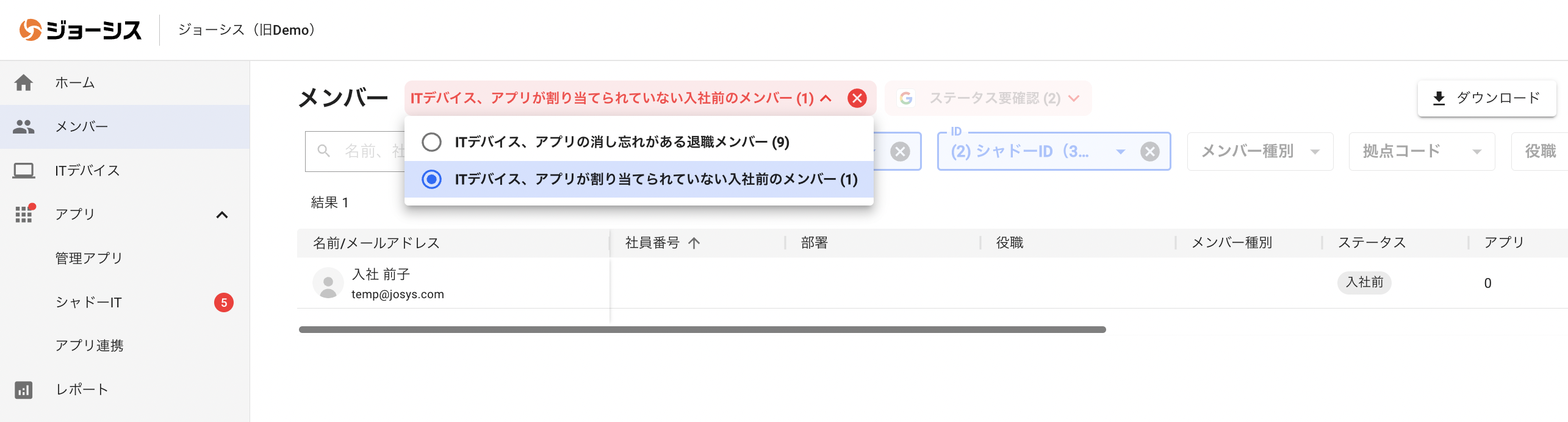 アラート:新入社員にITデバイス、アプリが割り当てられていません
