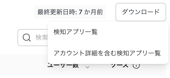 検知したアプリをクリック>ソースURLか、CSVを出力した場合に、検知したアプリのURLの確認が可能です。