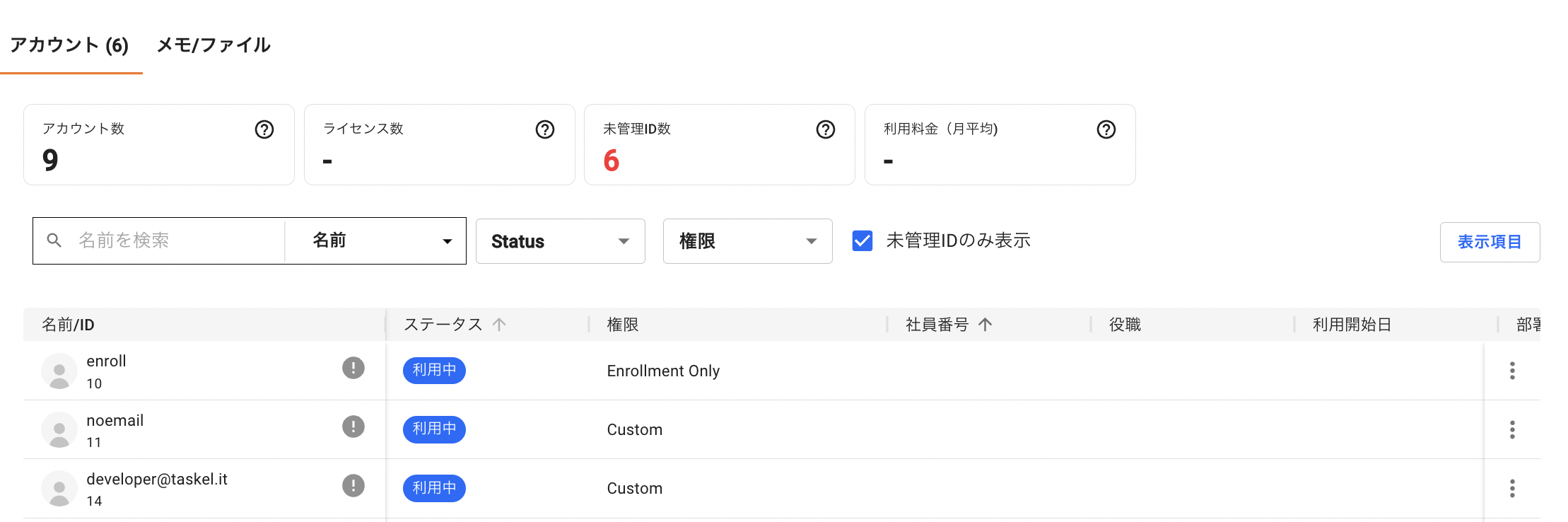 ここでは、SaaSに対して複数の未管理IDが存在しており、これは個人ではなく部署で管理するものだとします。