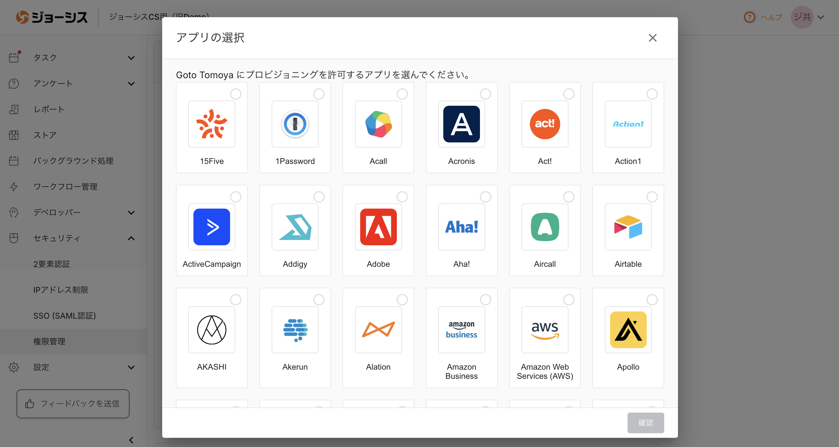 ⚠️アプリの連携は、Josysに招待を行った特権管理者の権限を持つユーザーにて行います。