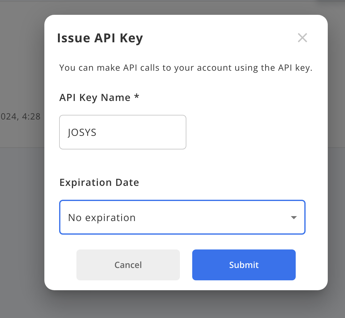 Create API Keyをクリック、APIキーを発行し、コピーを行います。
