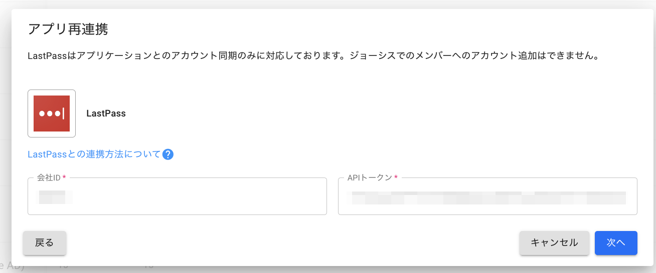 ジョーシスのアプリ連携ページでLastPassを連携する手順です