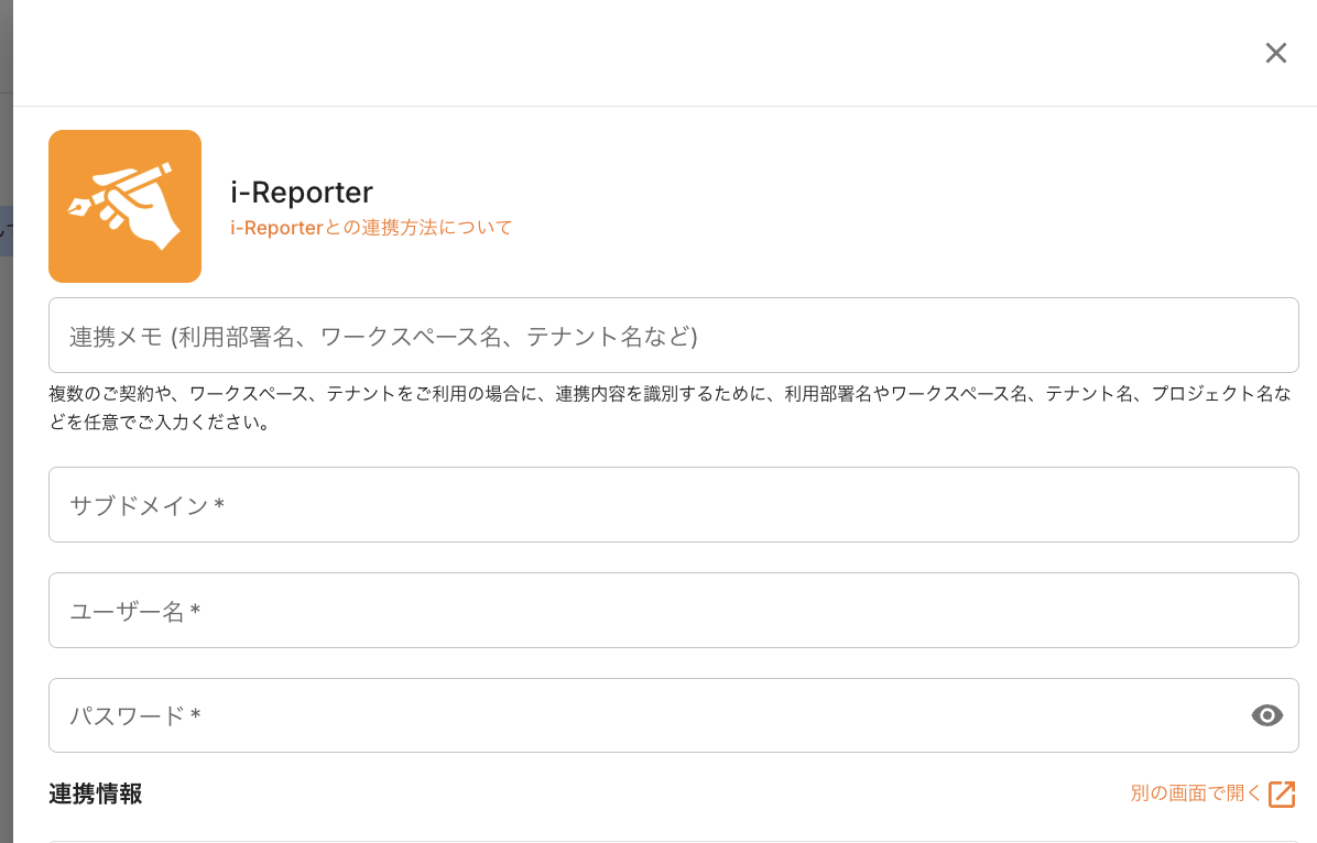 ジョーシスのアプリ連携ページでi-Reporterを連携する手順です