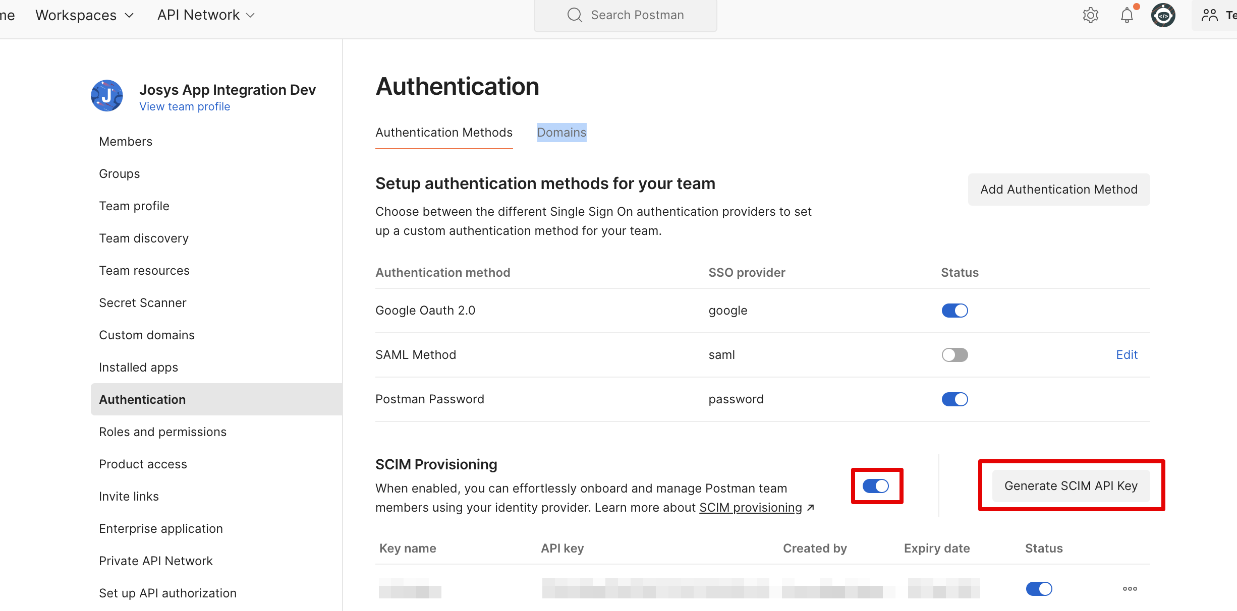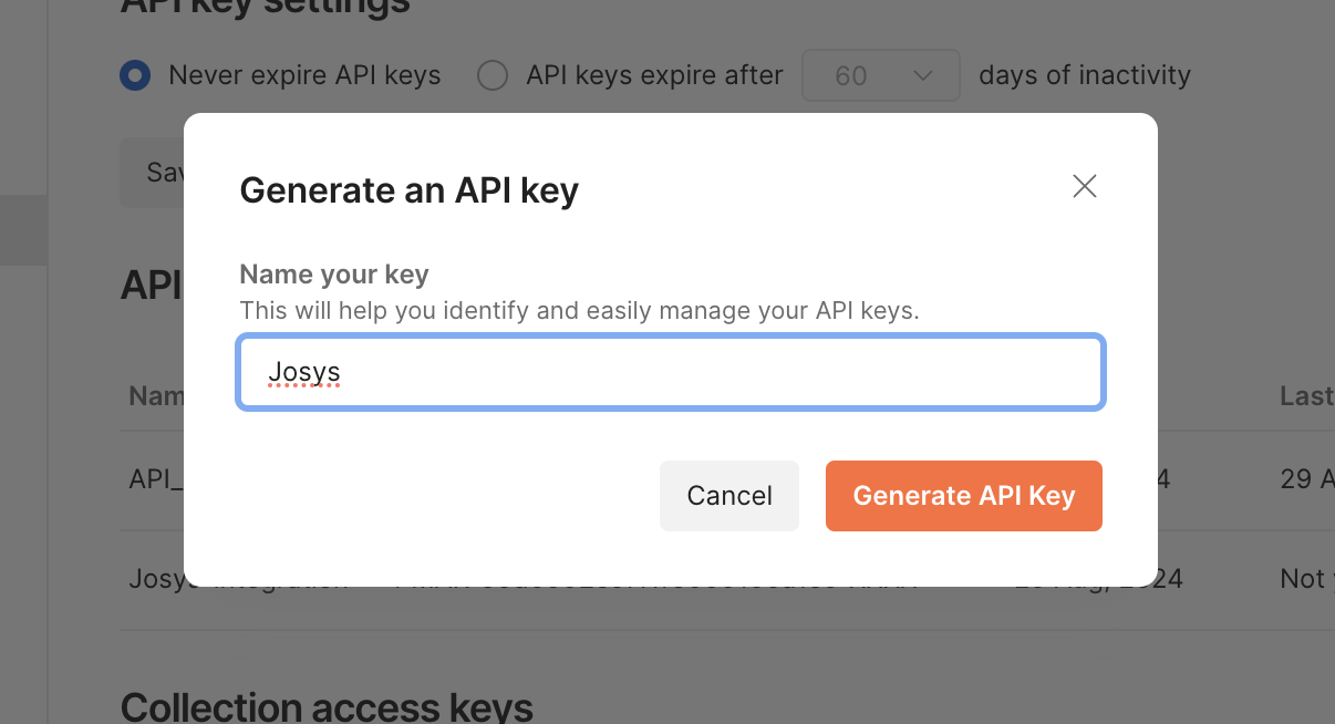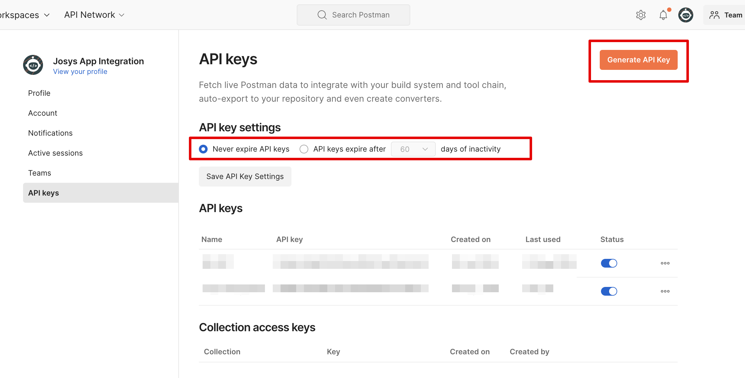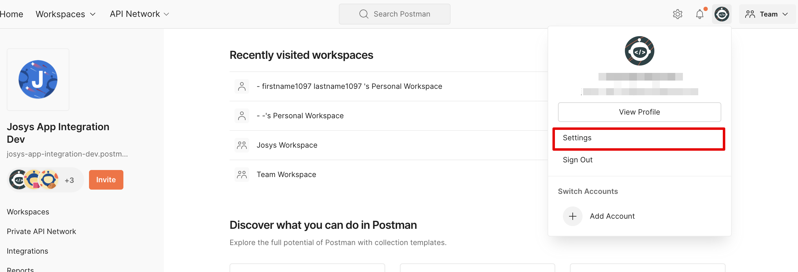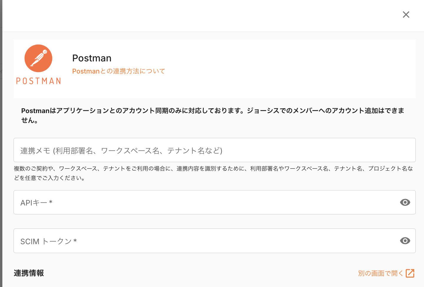 ジョーシスのアプリ連携ページでPostmanを連携する手順です