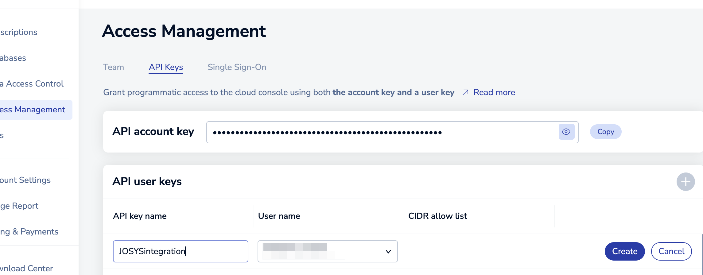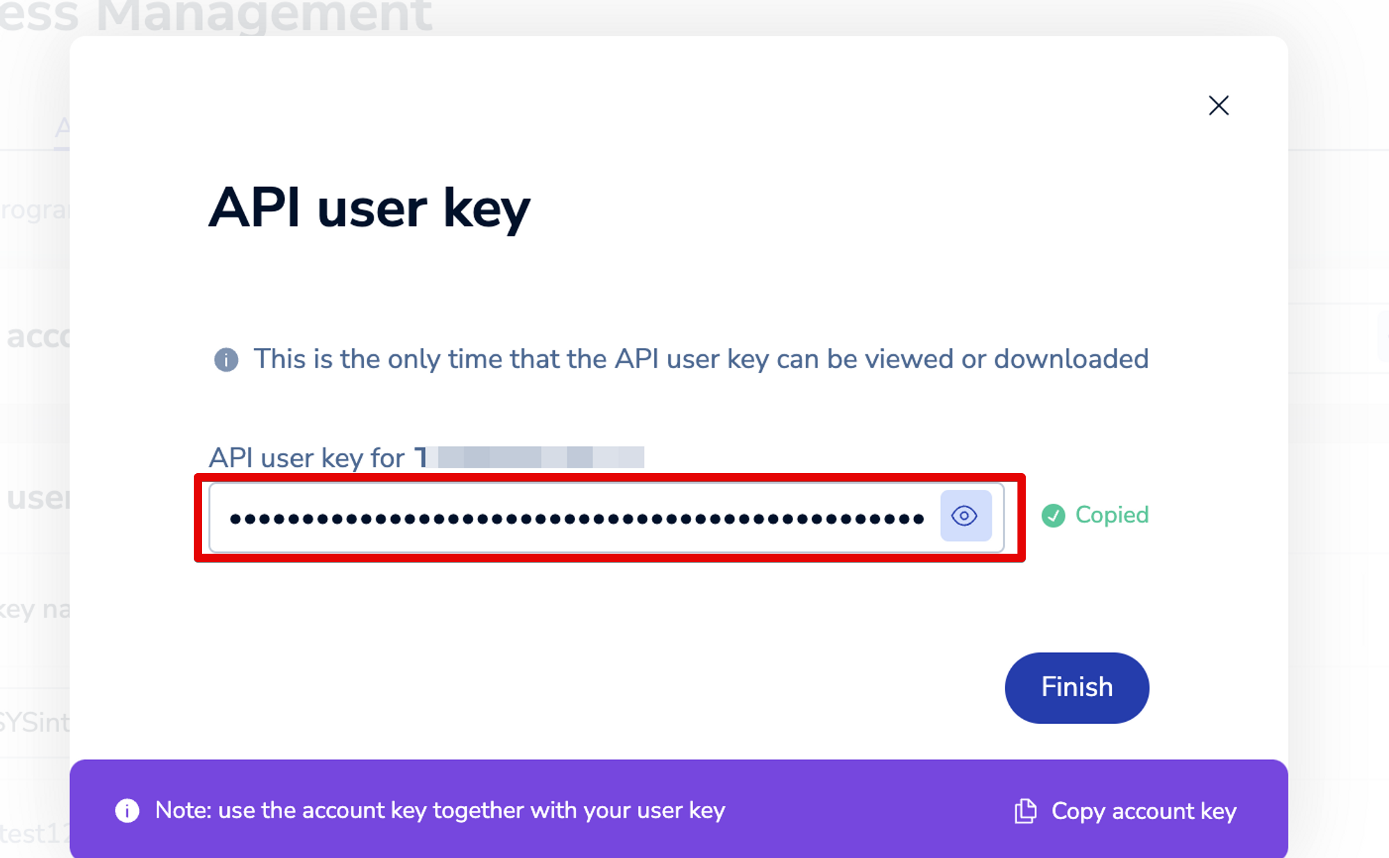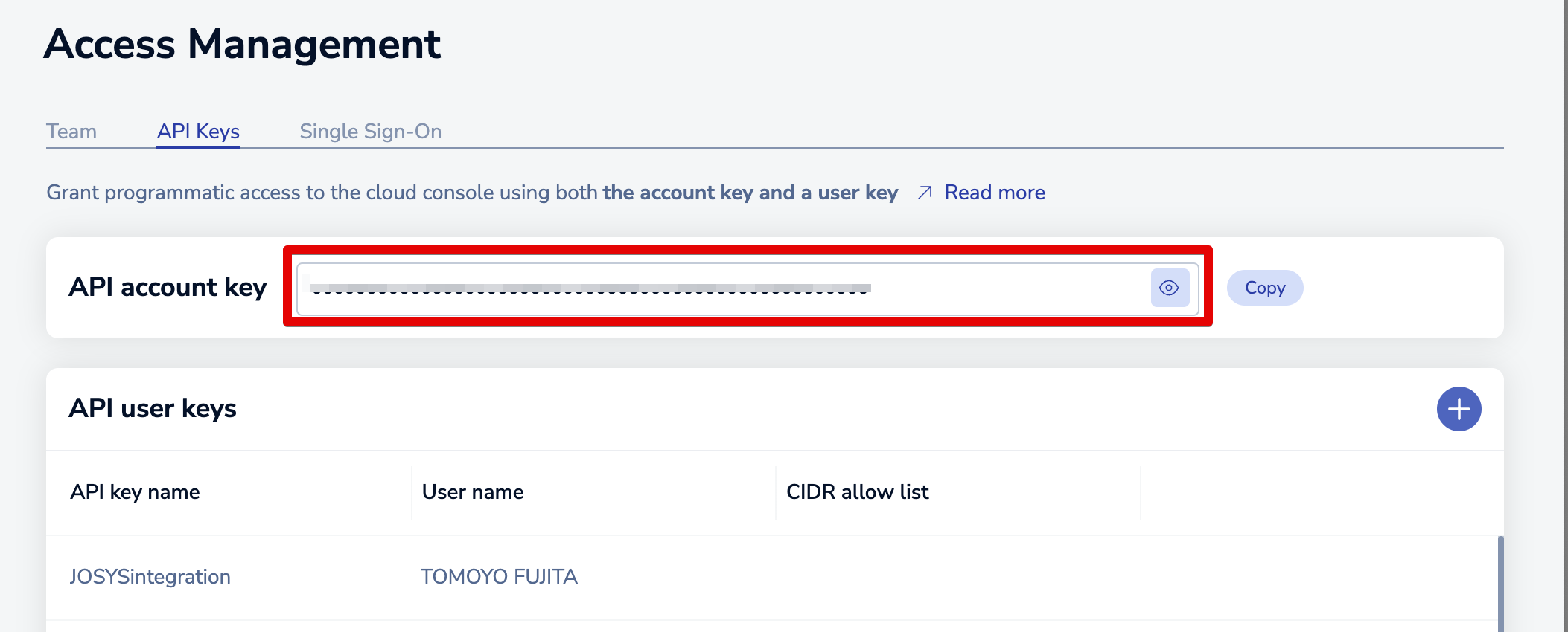 3.API user keyを発行し、API account keyとAPI user keyをコピーします。