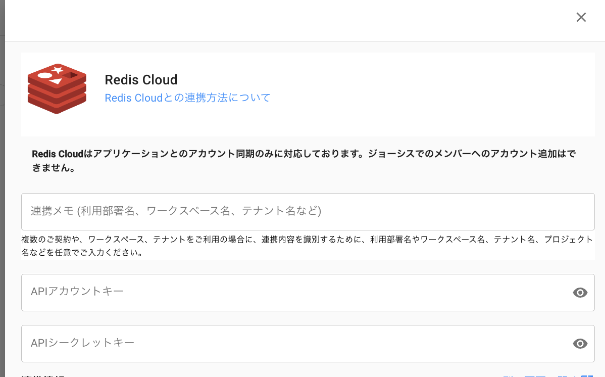 ジョーシスのアプリ連携ページでRedis Cloudを連携する手順です