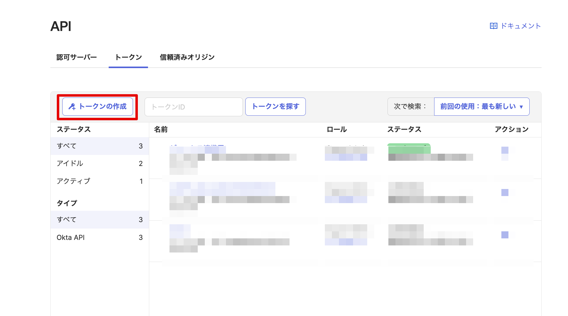 | 取得可能な権限の種類 | ・Super Admin ・Org Admin ・Group Admin ・App Admin ・Read-Only Admin ・Mobile Admin ・Help Desk Admin ・Report Admin ・API Access Management Admin ・Group Membership Admin +その他カスタムロール |