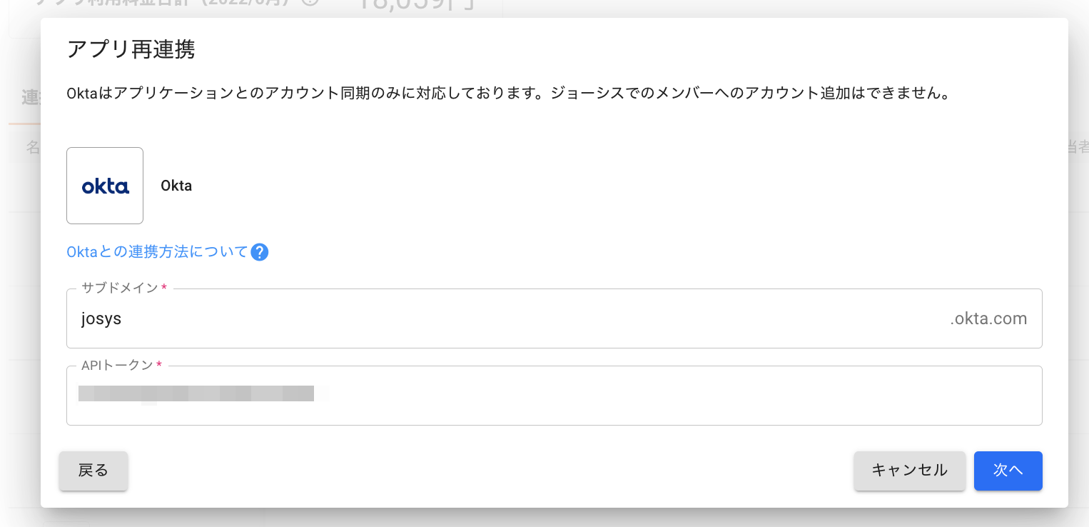ジョーシスのアプリ連携ページでOktaを連携する手順です。