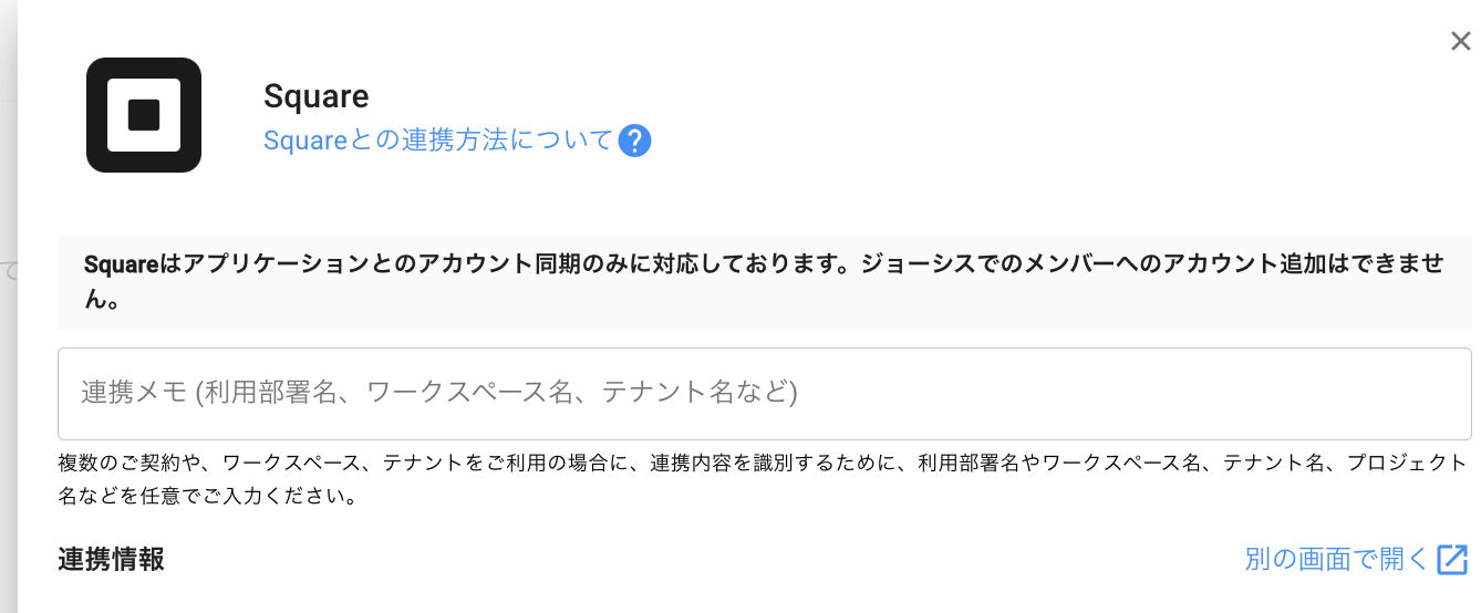 ジョーシスのアプリ連携ページでSquareを連携する手順です