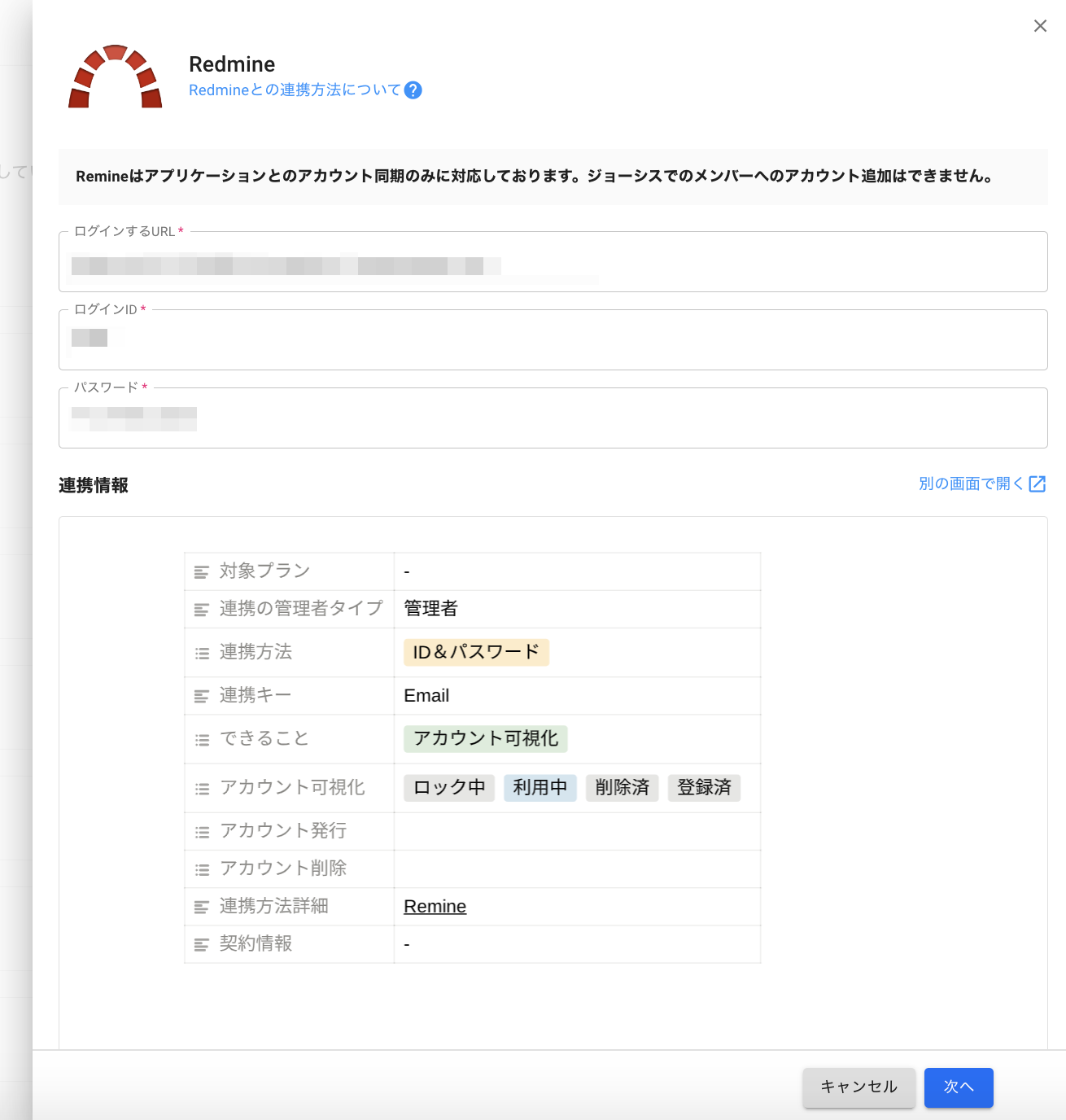 ジョーシスのアプリ連携ページでRedmineを連携する手順です