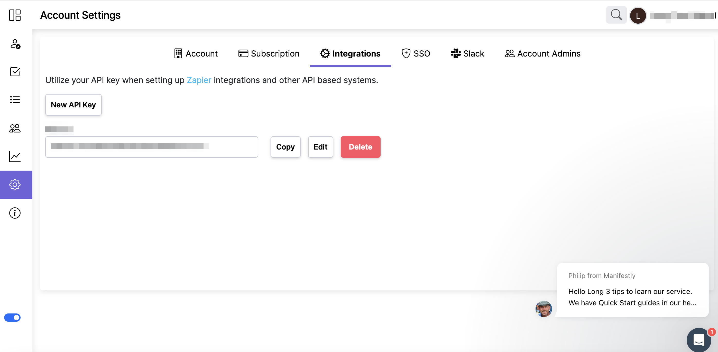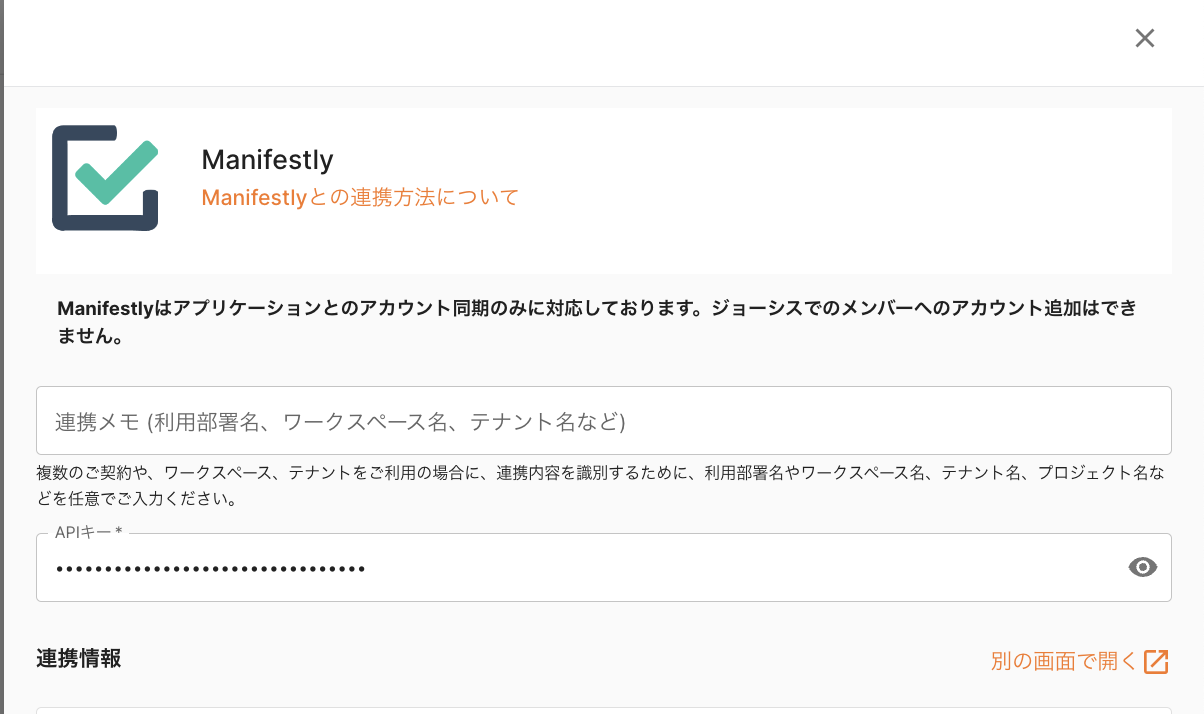 ジョーシスのアプリ連携ページでManifestlyを連携する手順です
