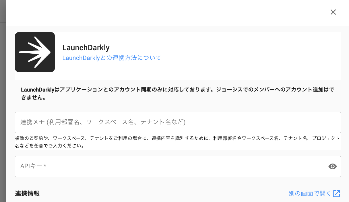 ジョーシスのアプリ連携ページでLaunchDarklyを連携する手順です