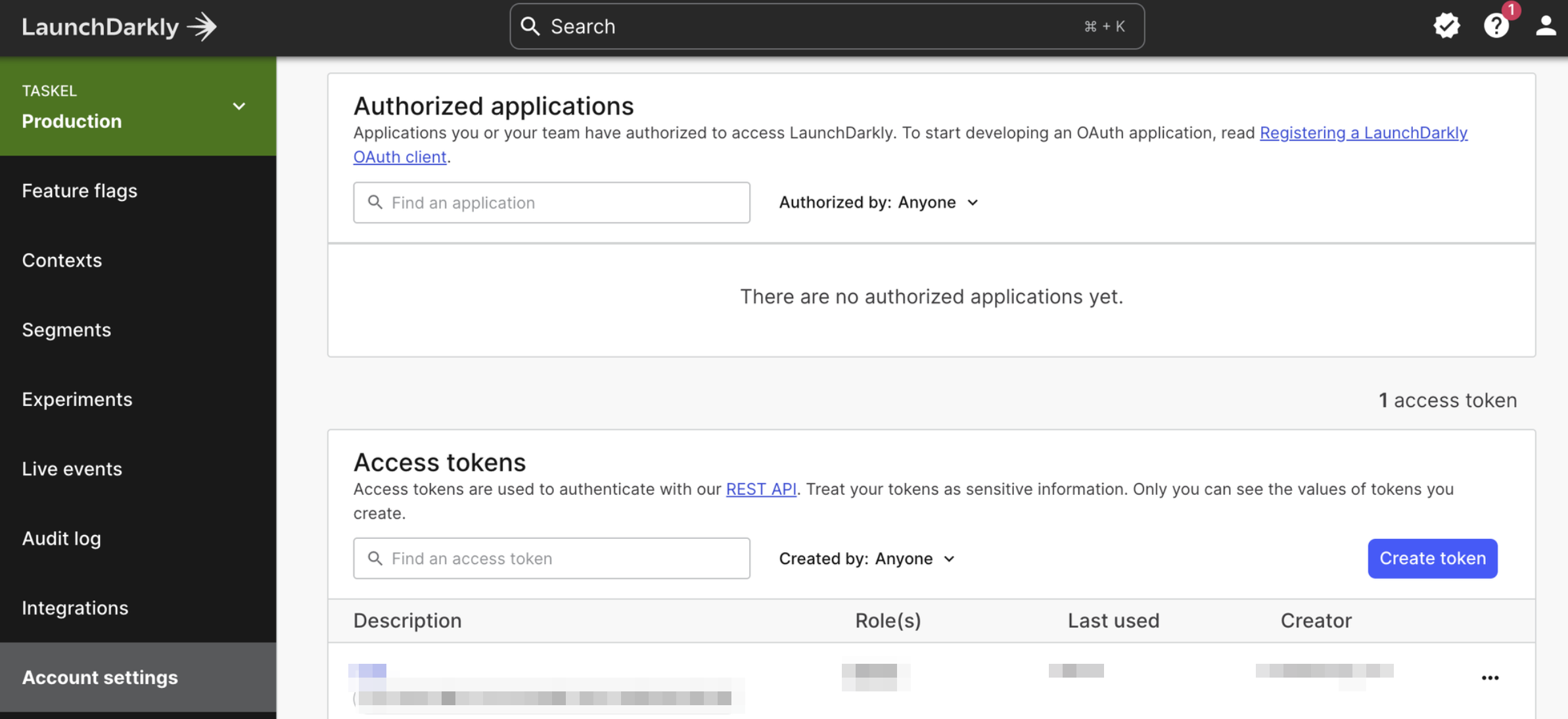 Create tokenをクリックし、