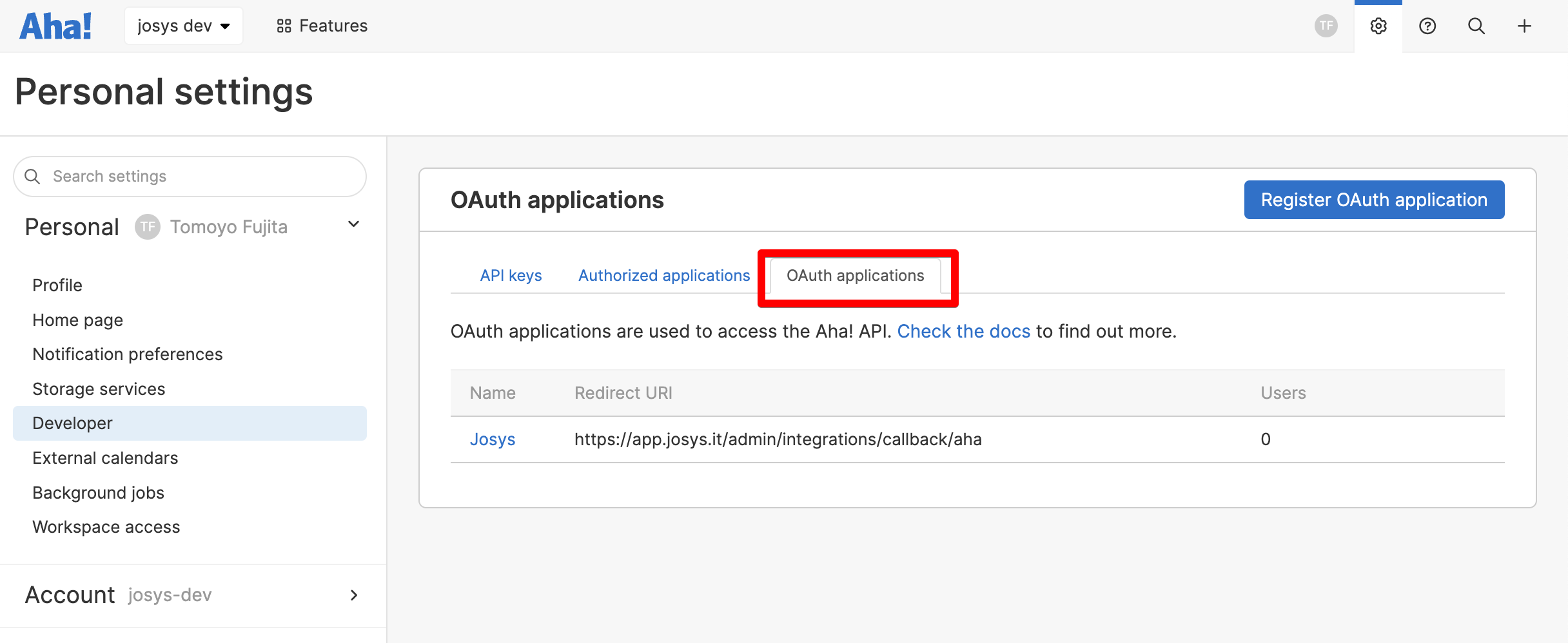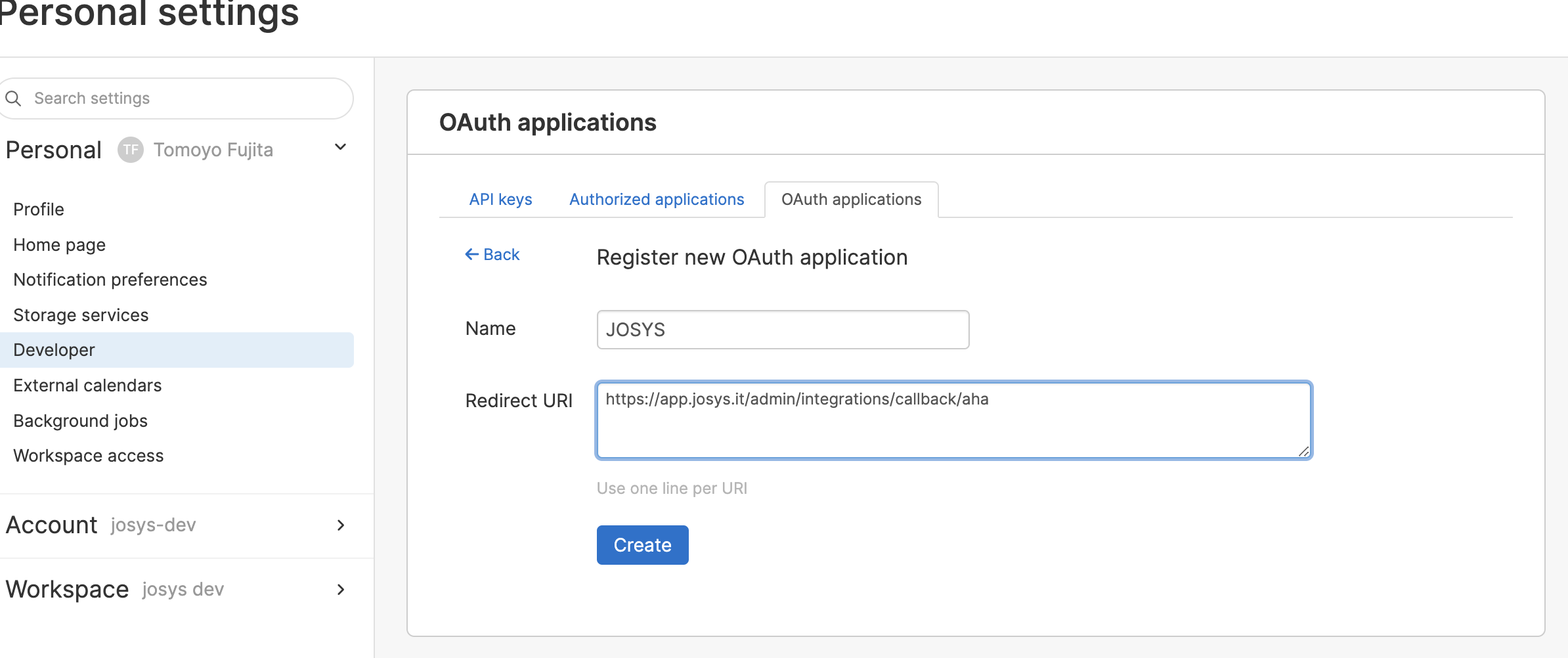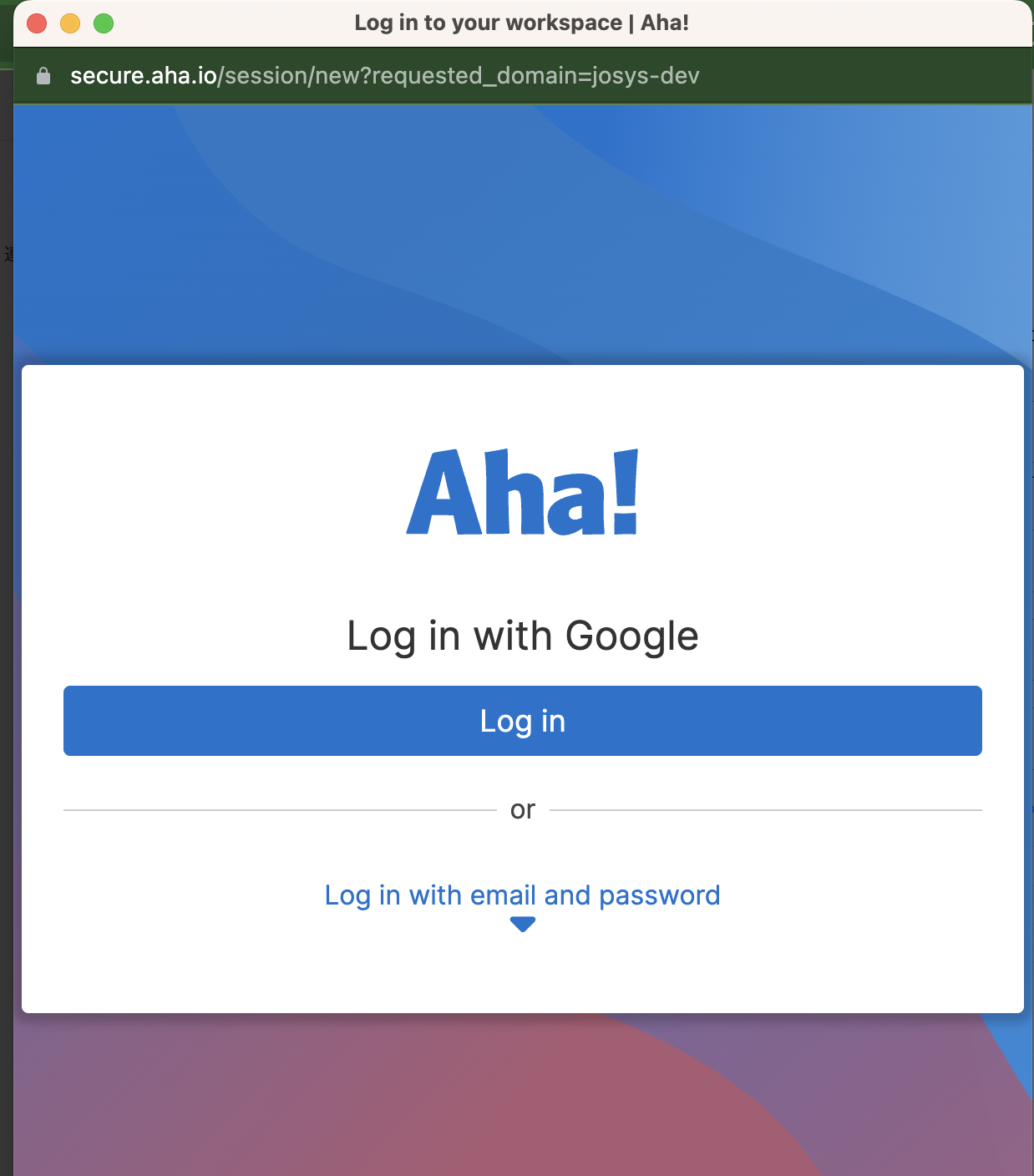 例)https://josys-dev.aha.io/ の場合は、 josys-dev を入力します。