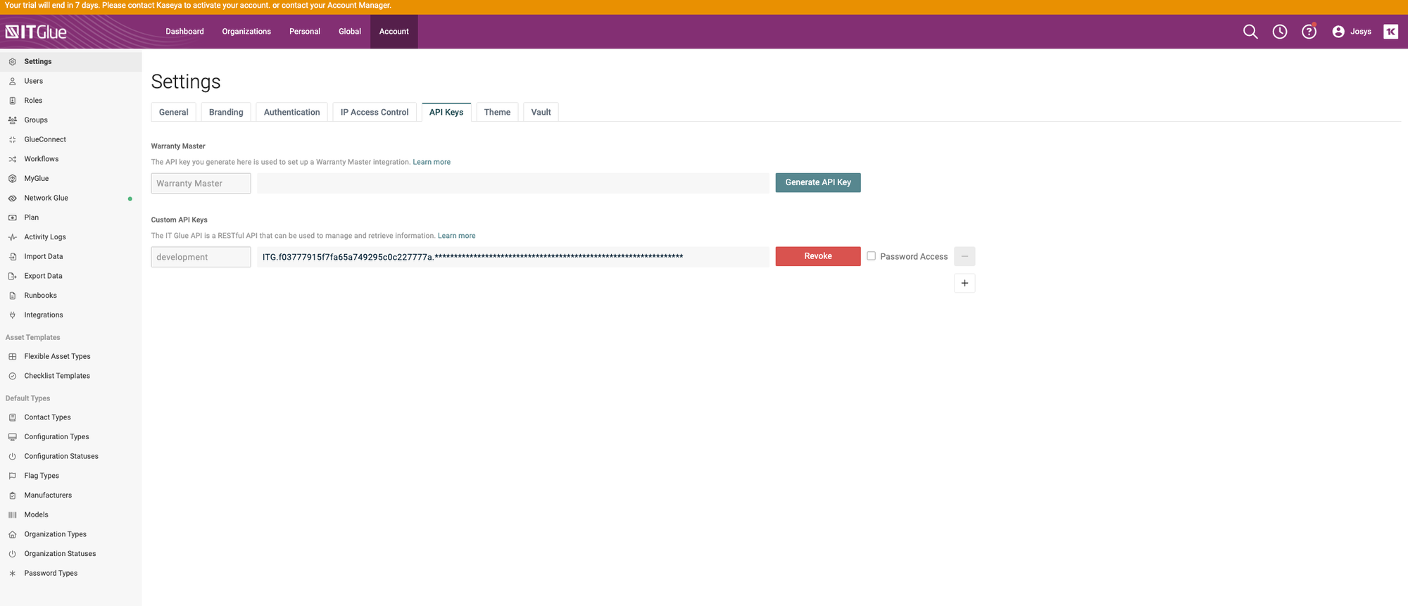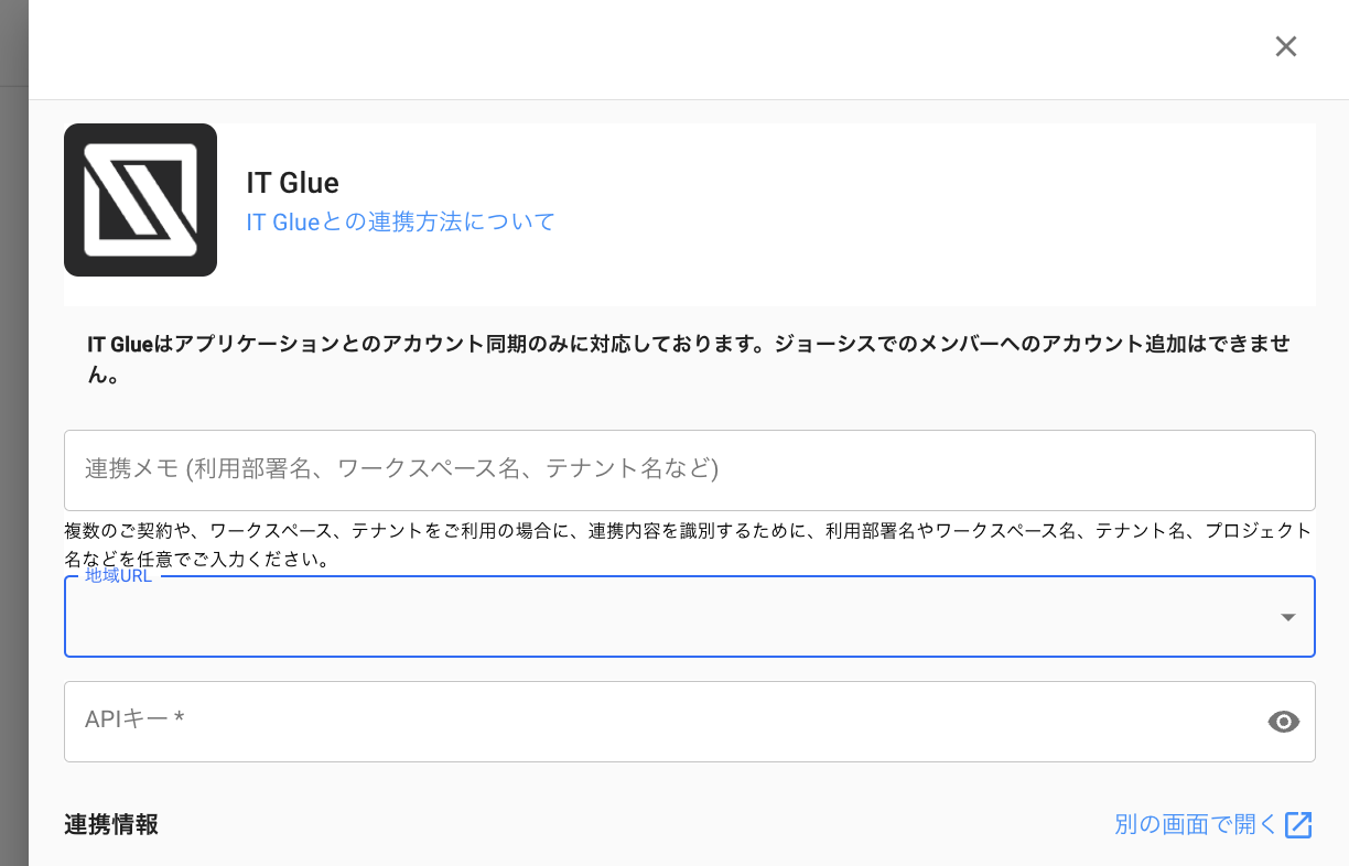 ジョーシスのアプリ連携ページでIT Glueを連携する手順です