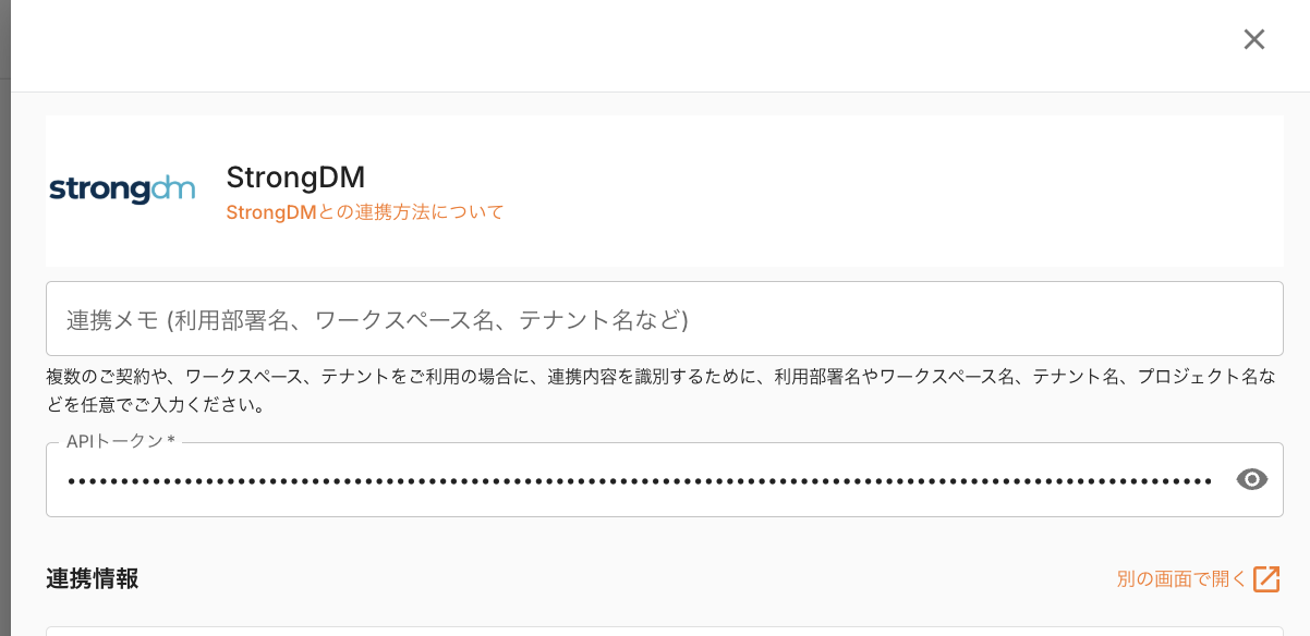 ジョーシスのアプリ連携ページでStrongDMを連携する手順です