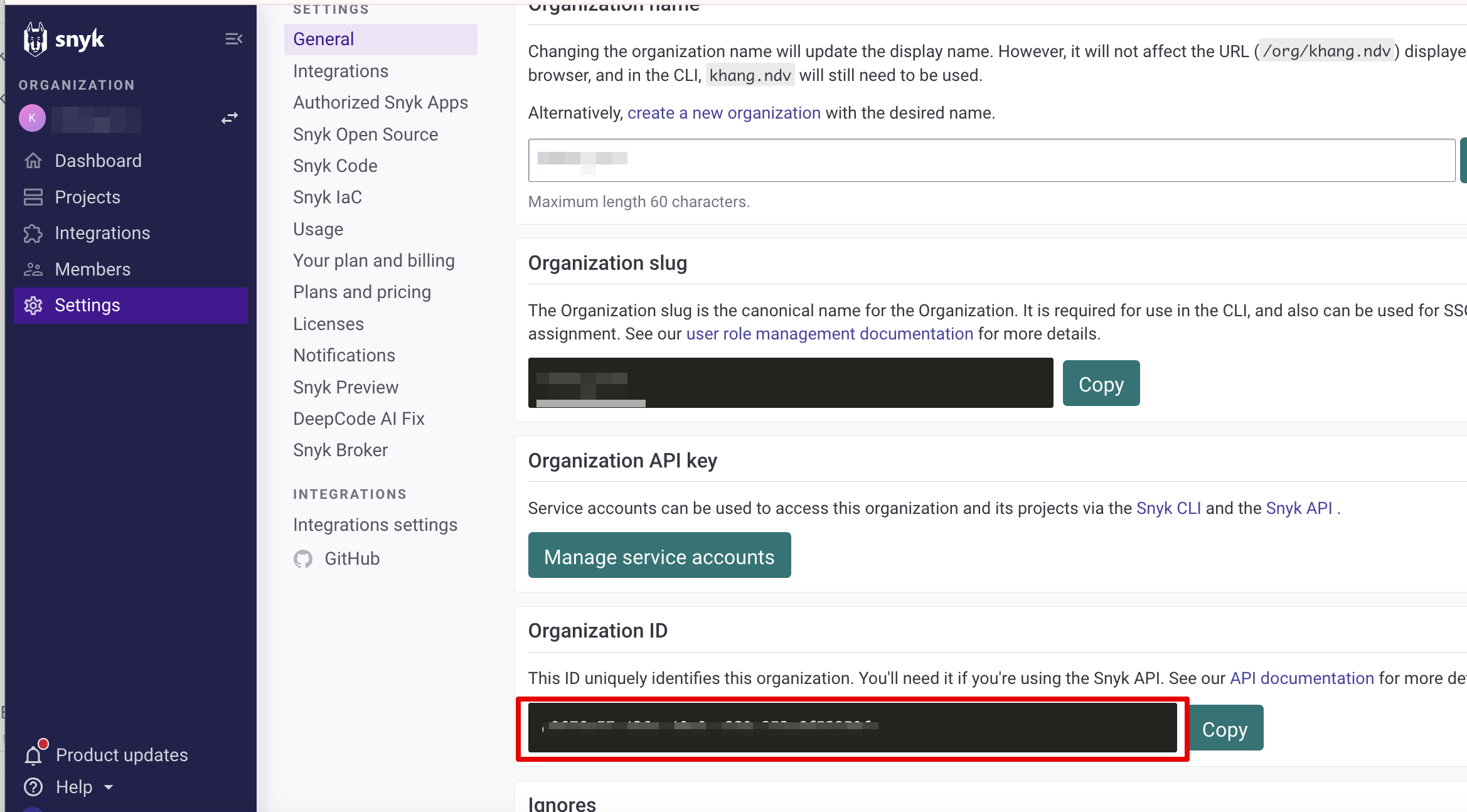 ●組織IDは、Settings >Generalから取得できます。