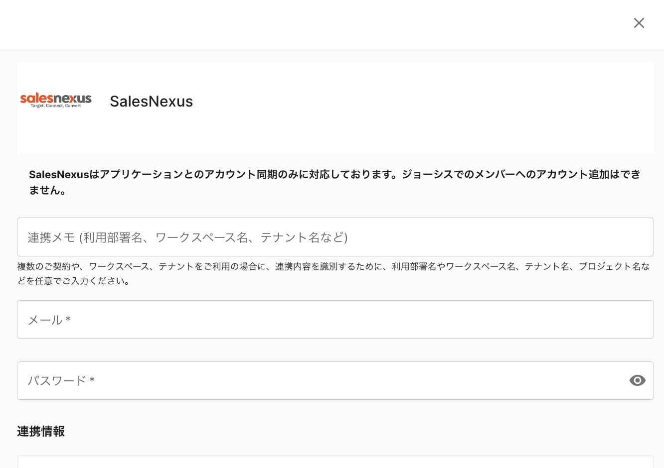 | 連携キー | SalesNexusアカウントID |