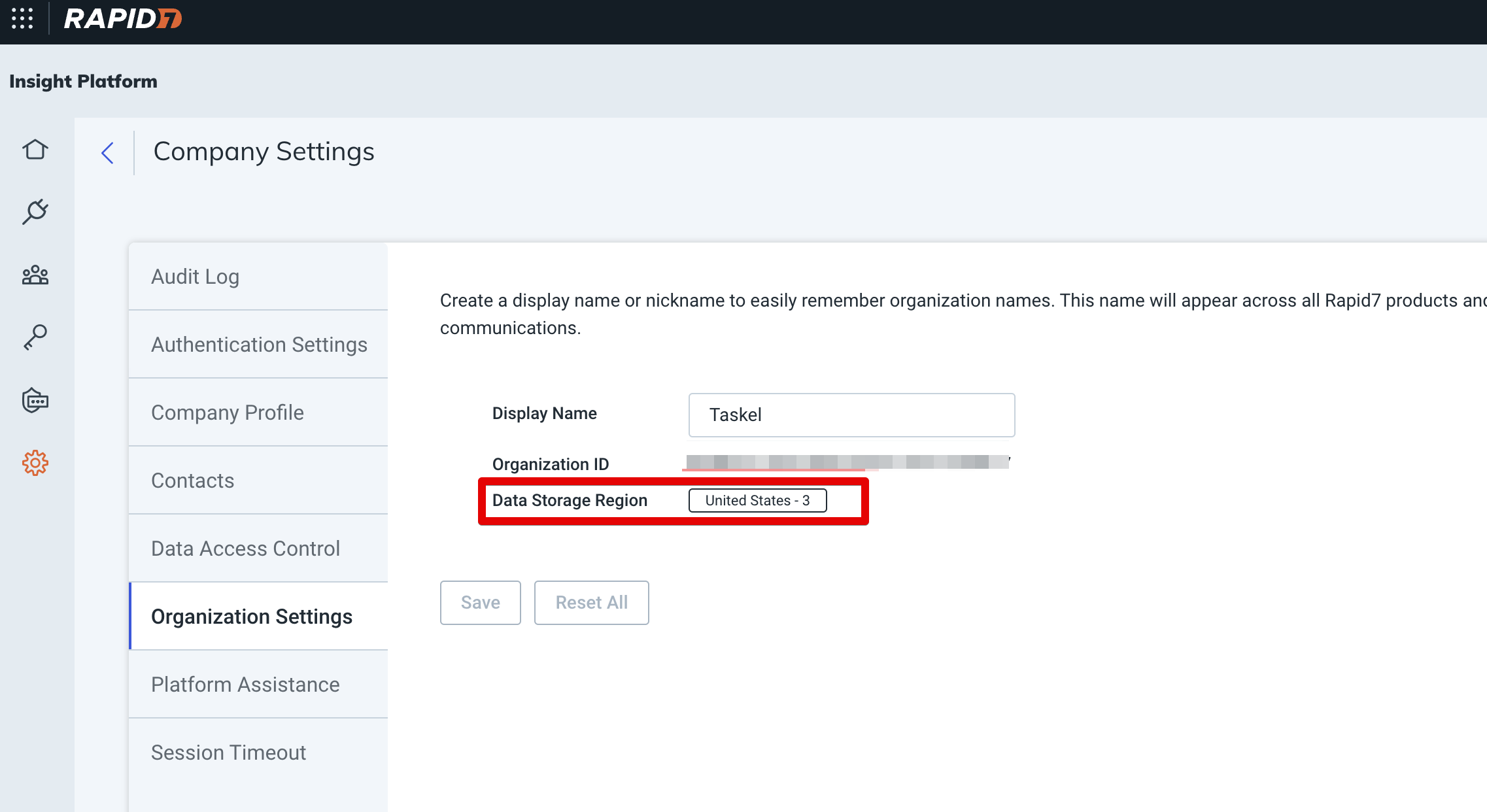 ・地域はOrganization Settingsより確認できます。