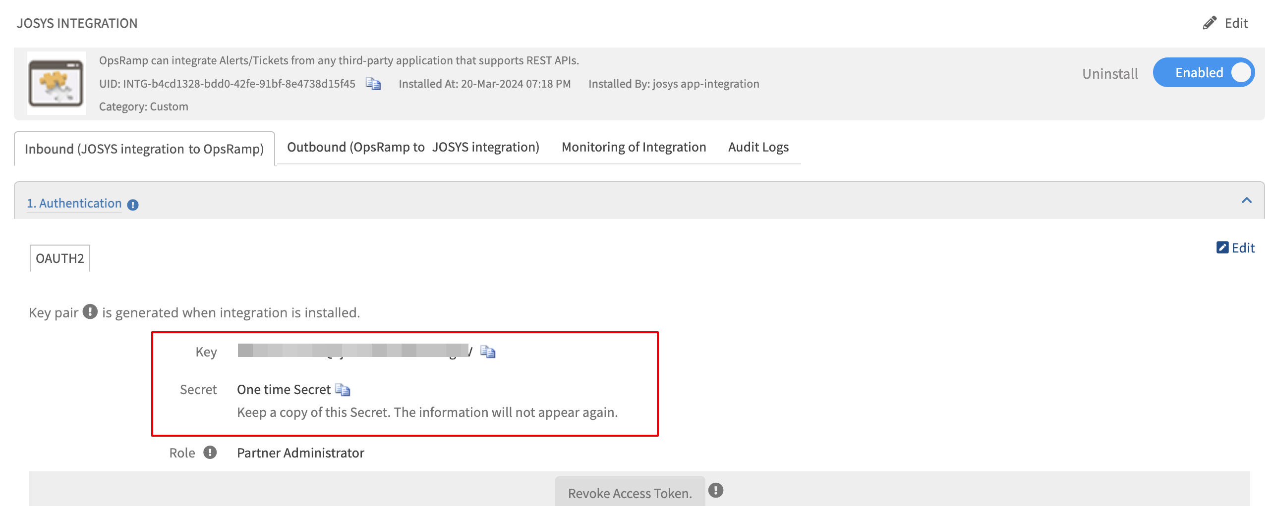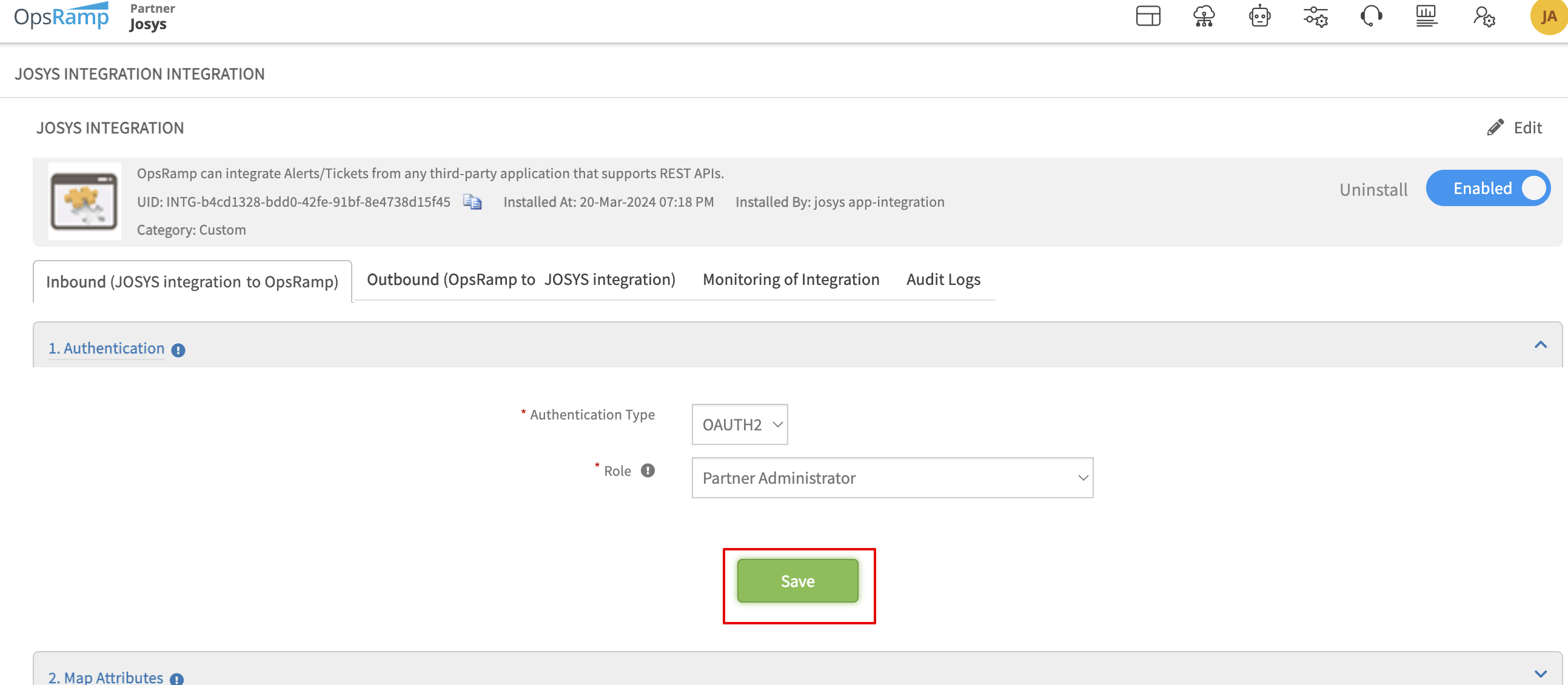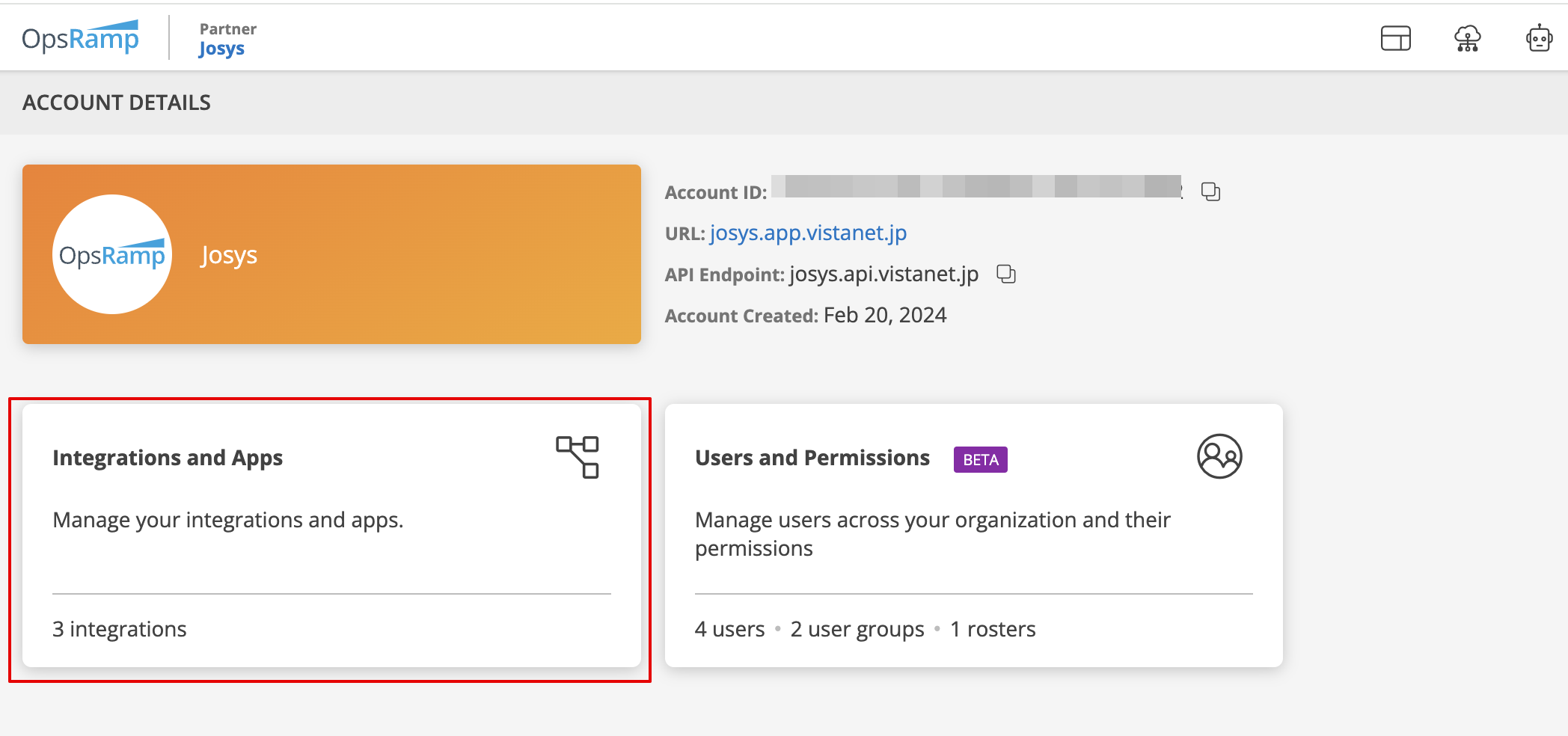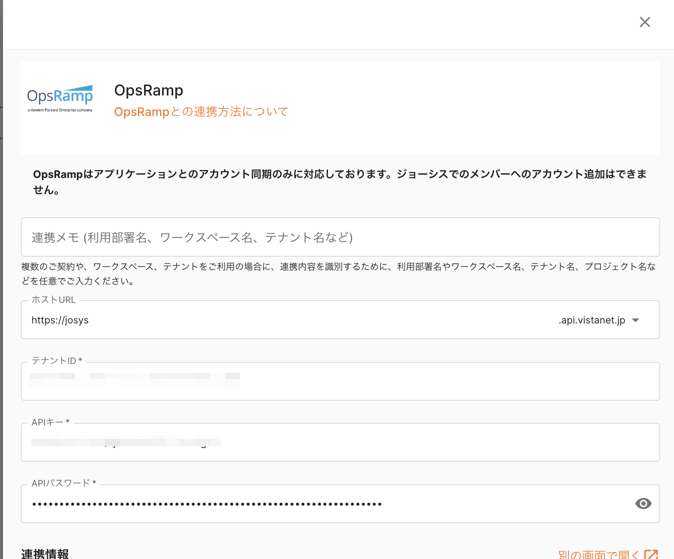 ジョーシスのアプリ連携ページでOpsRampを連携する手順です