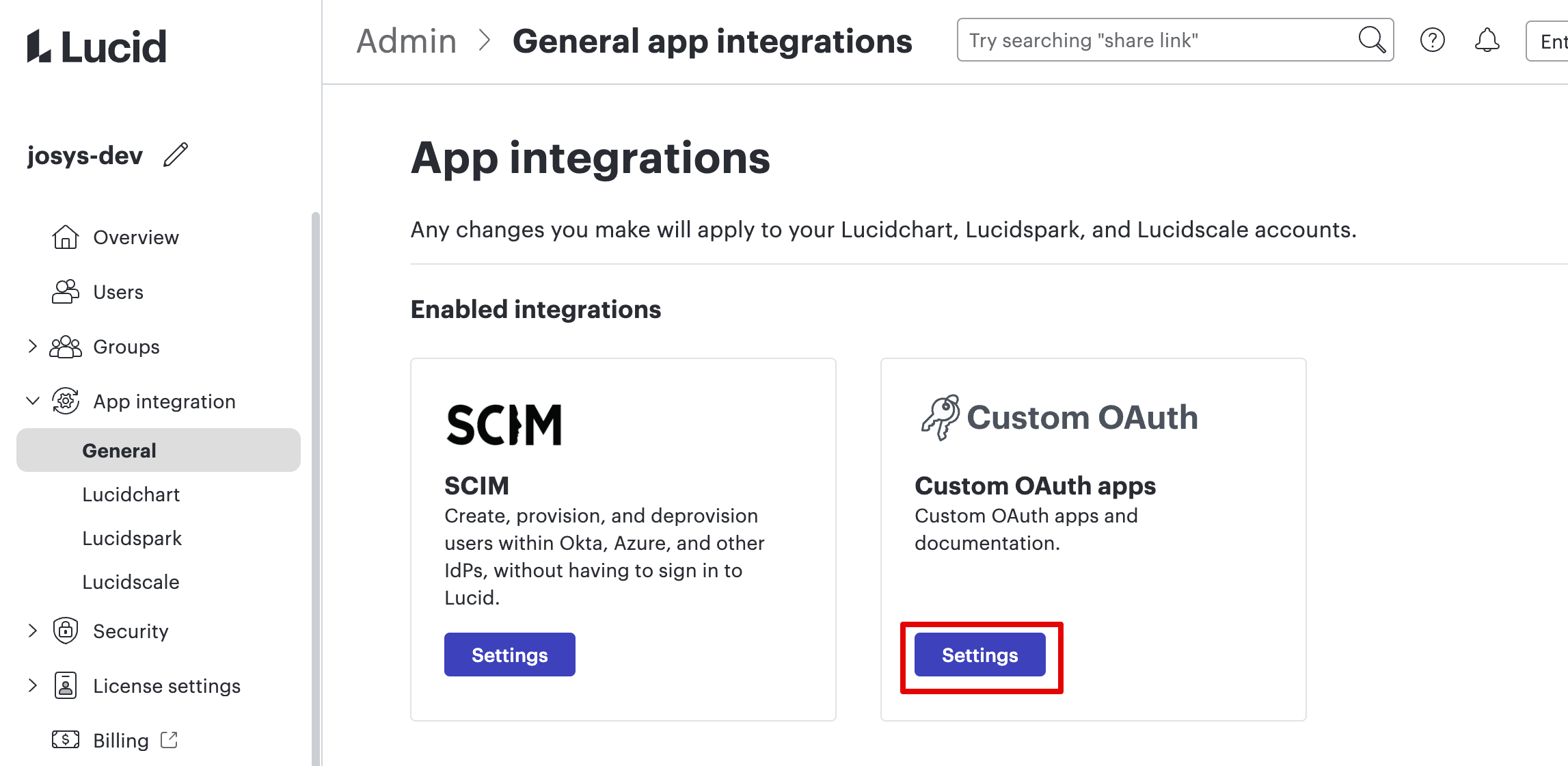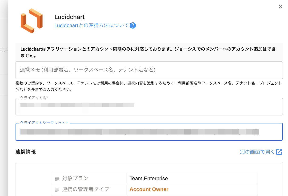 ジョーシスのアプリ連携ページでLucidchartを連携する手順です。