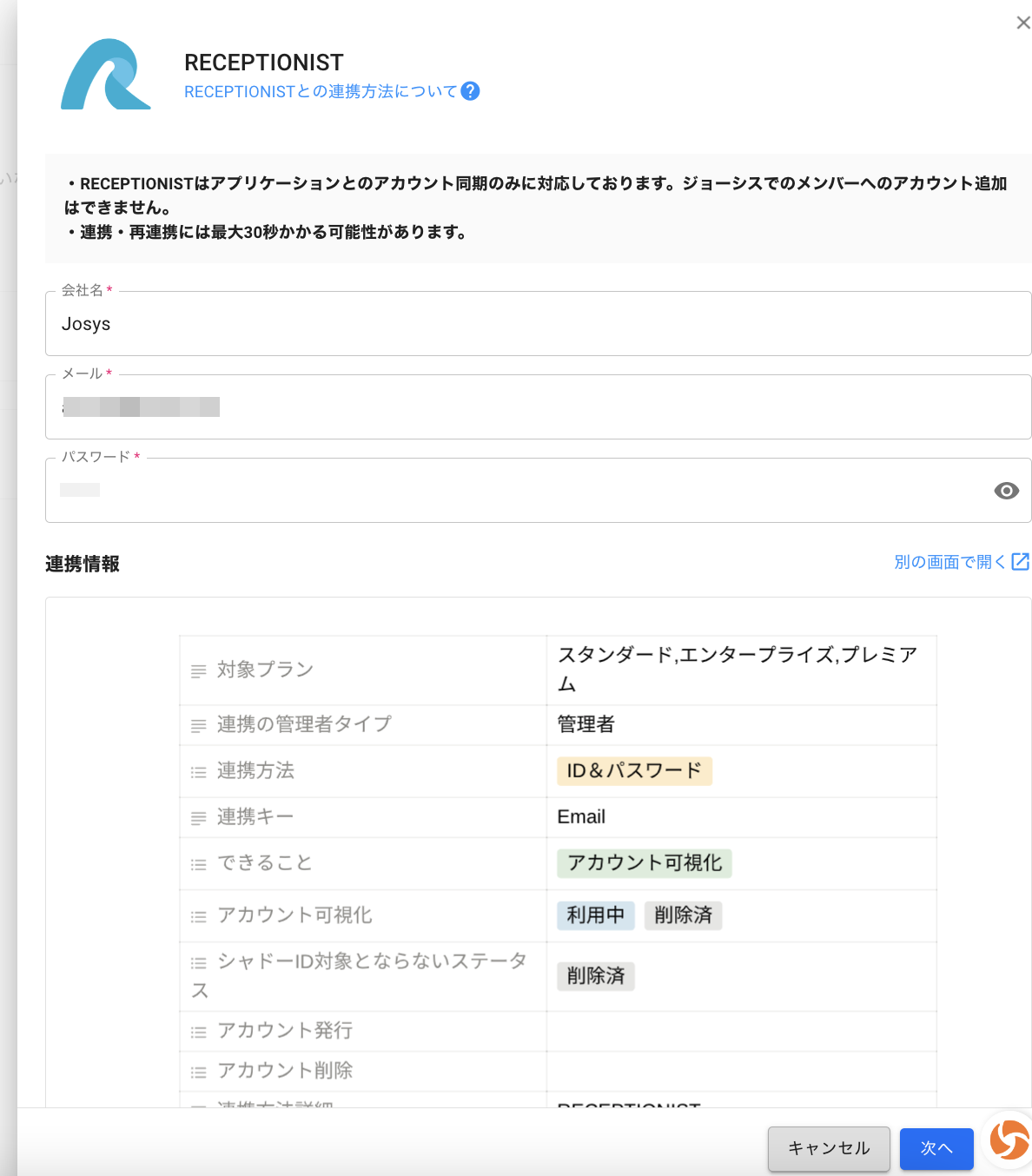 | 連携方法 | ID&パスワード |