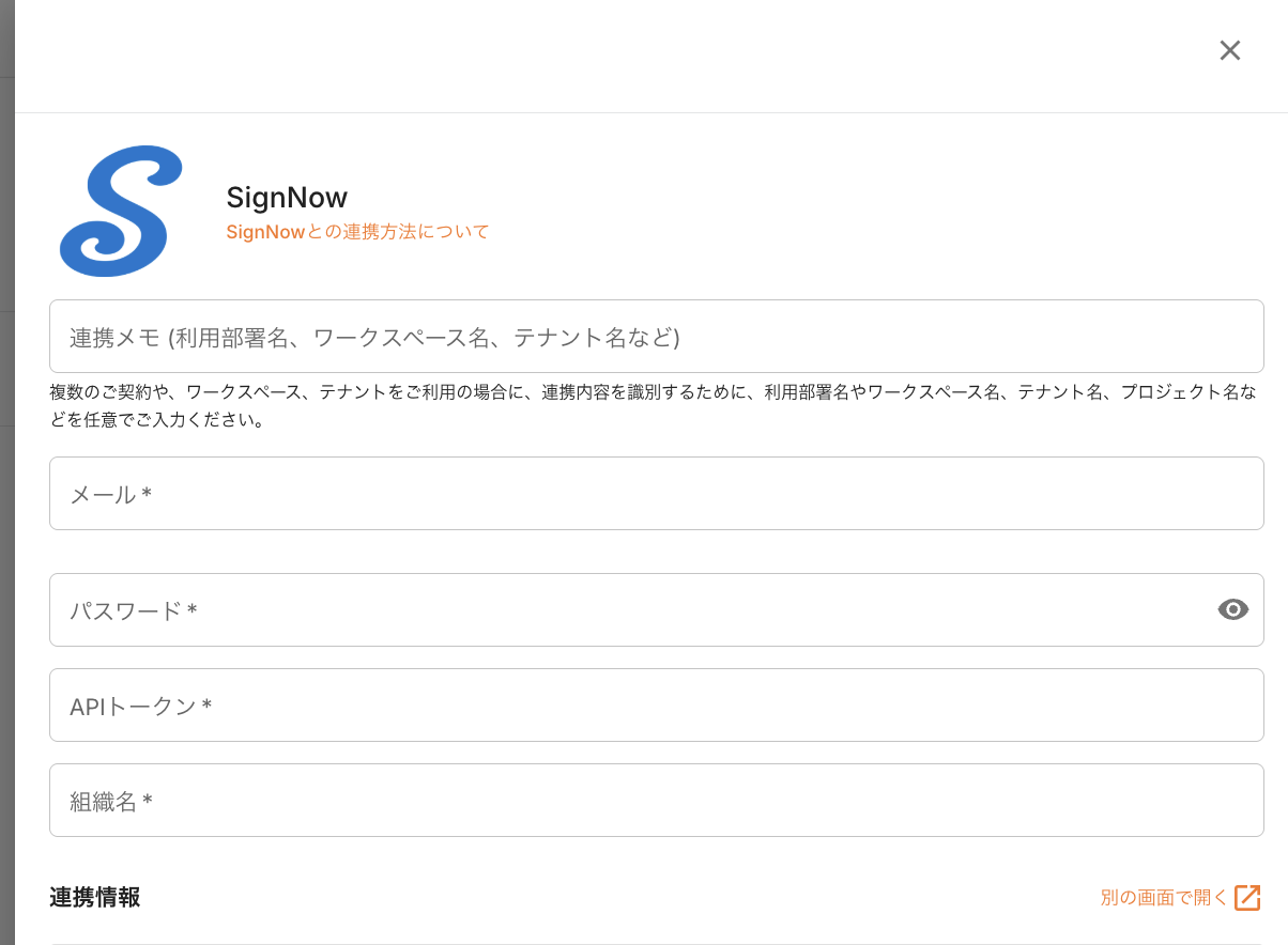 ジョーシスのアプリ連携ページでSignNowを連携する手順です
