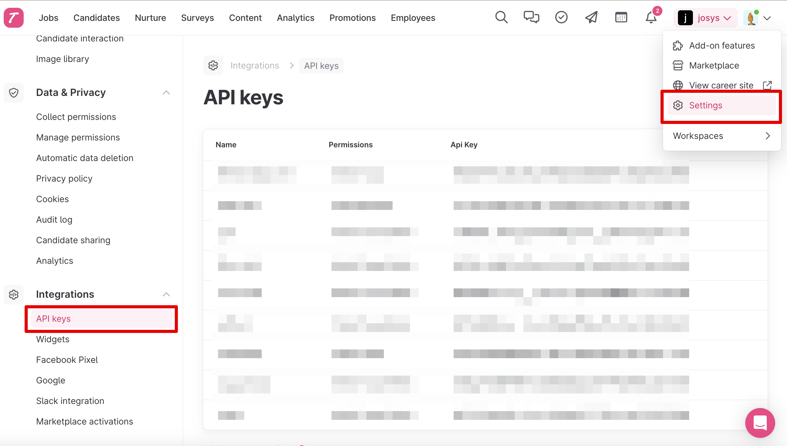 ジョーシスのアプリ連携ページでTeamtailorを連携する手順です