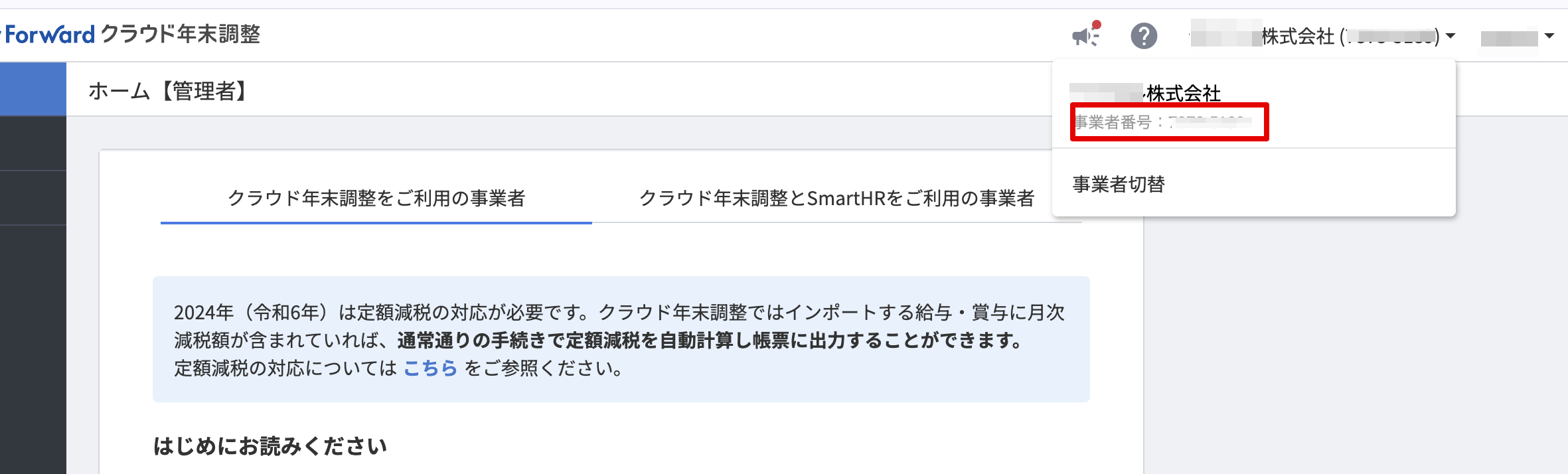 1.マネーフォワード クラウド年末調整に 全権管理者 アカウントでログインし、
