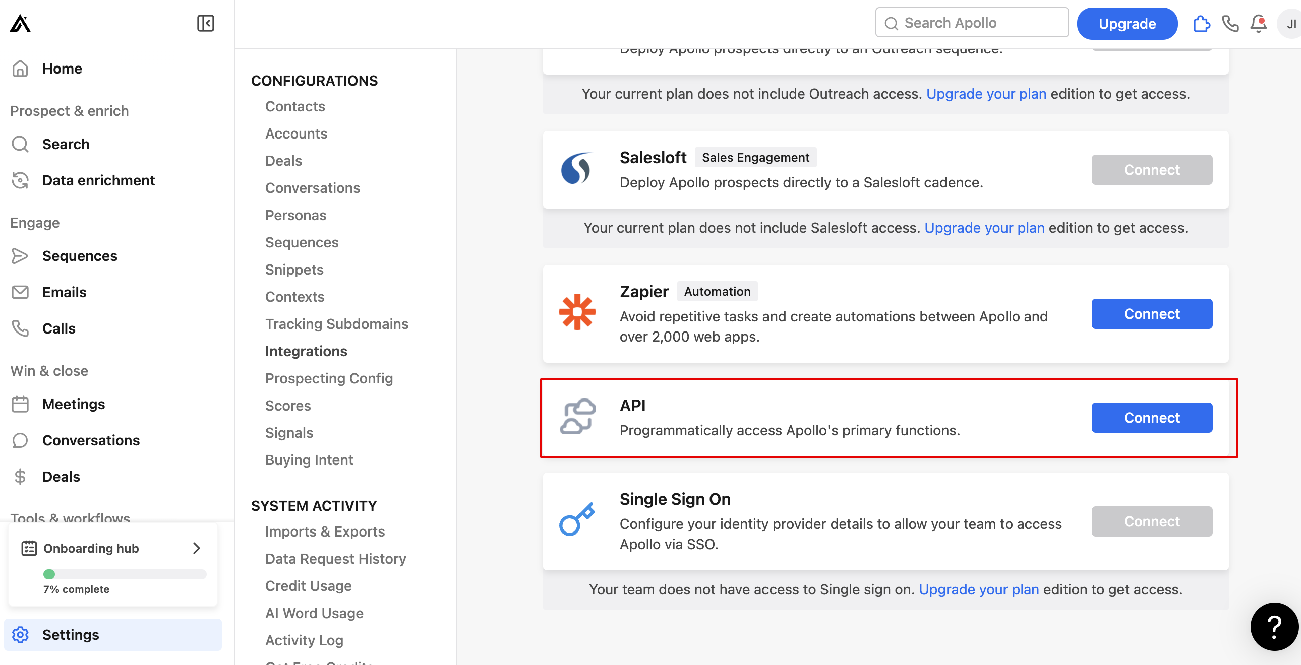 Settings >Integrations を表示します。