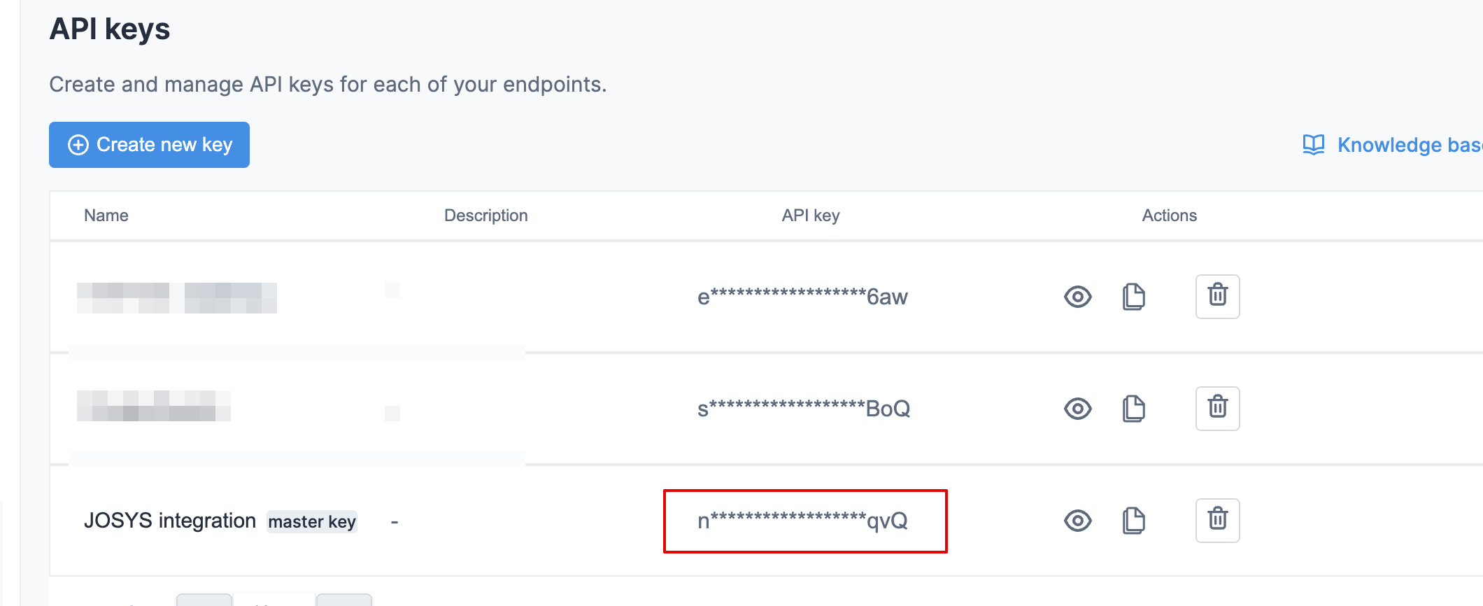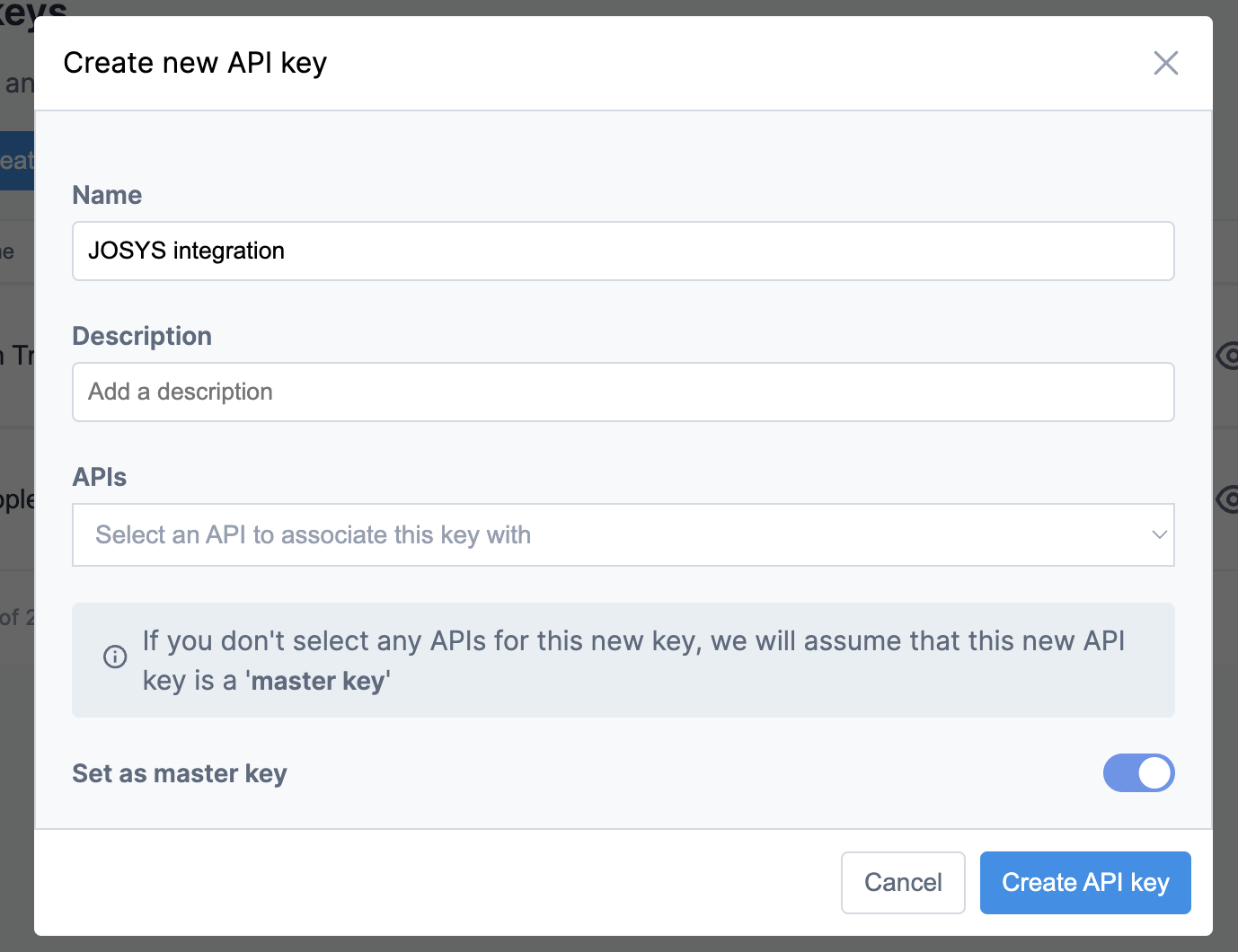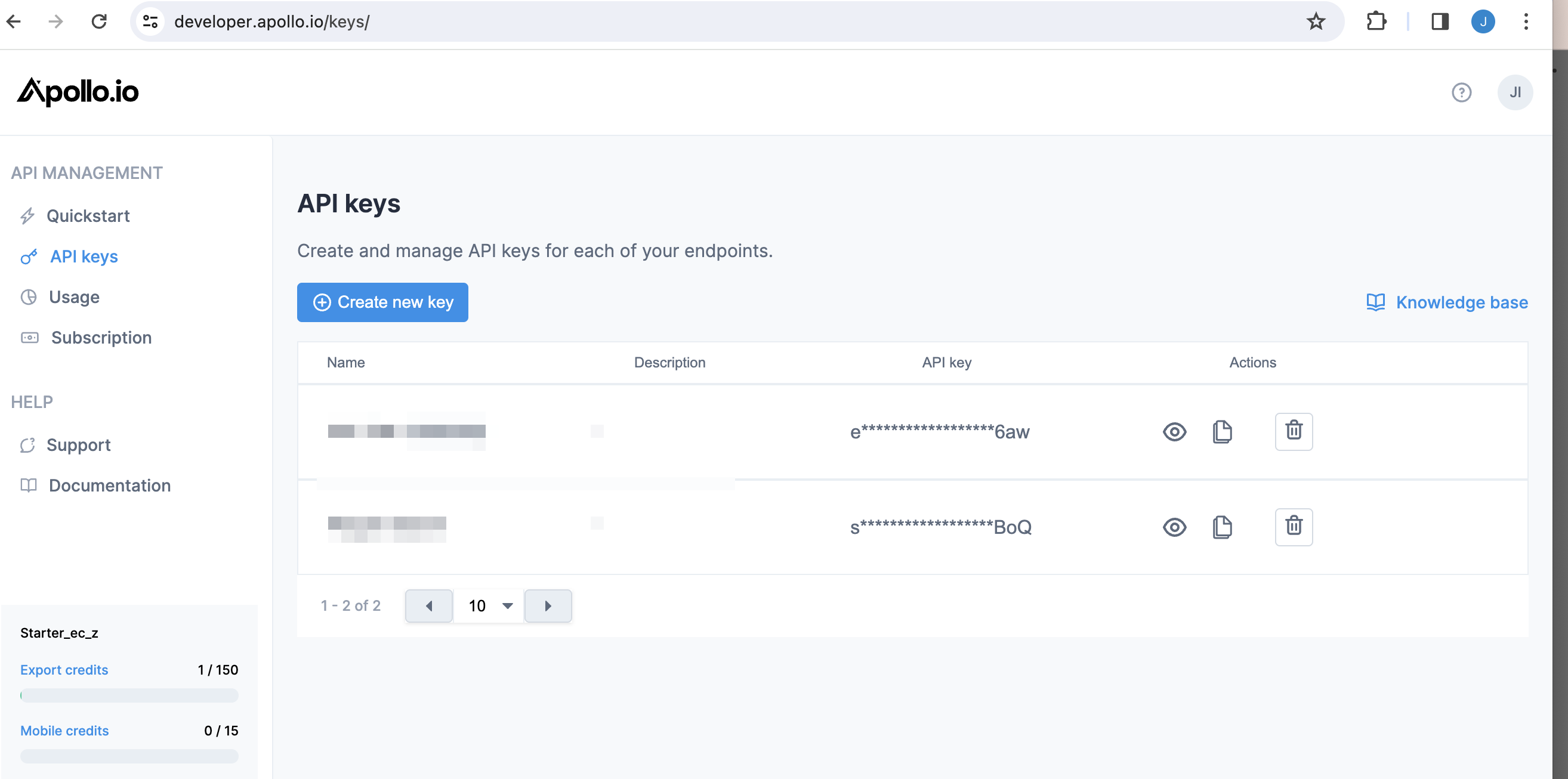 3. API Keysを表示、 Create new Key をクリックし、トークンを発行してコピーします。