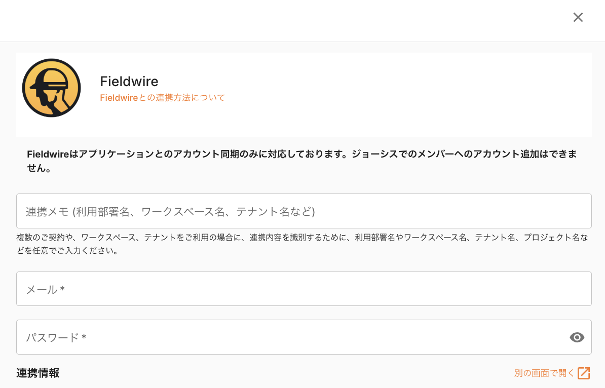 ジョーシスのアプリ連携ページでFieldwireを連携する手順です