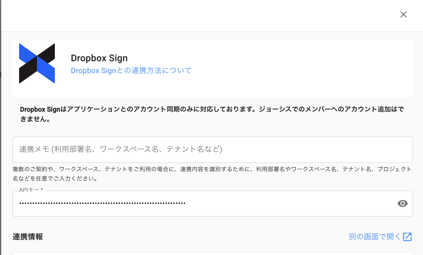 ジョーシスのアプリ連携ページでDropbox Signを連携する手順です