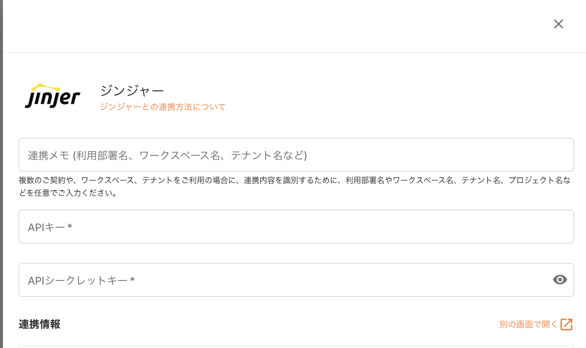 ジョーシスのアプリ連携ページでジンジャーを連携する手順です