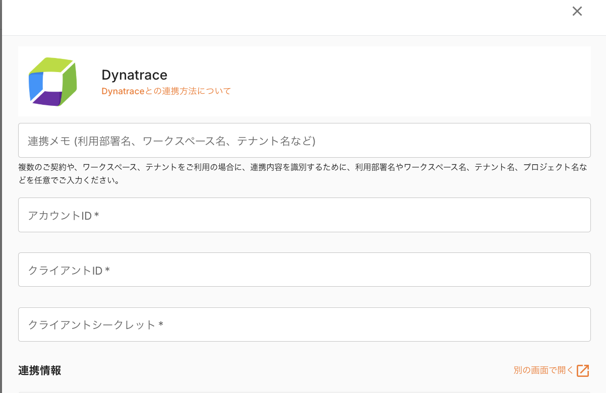 ジョーシスのアプリ連携ページでDynatraceを連携する手順です