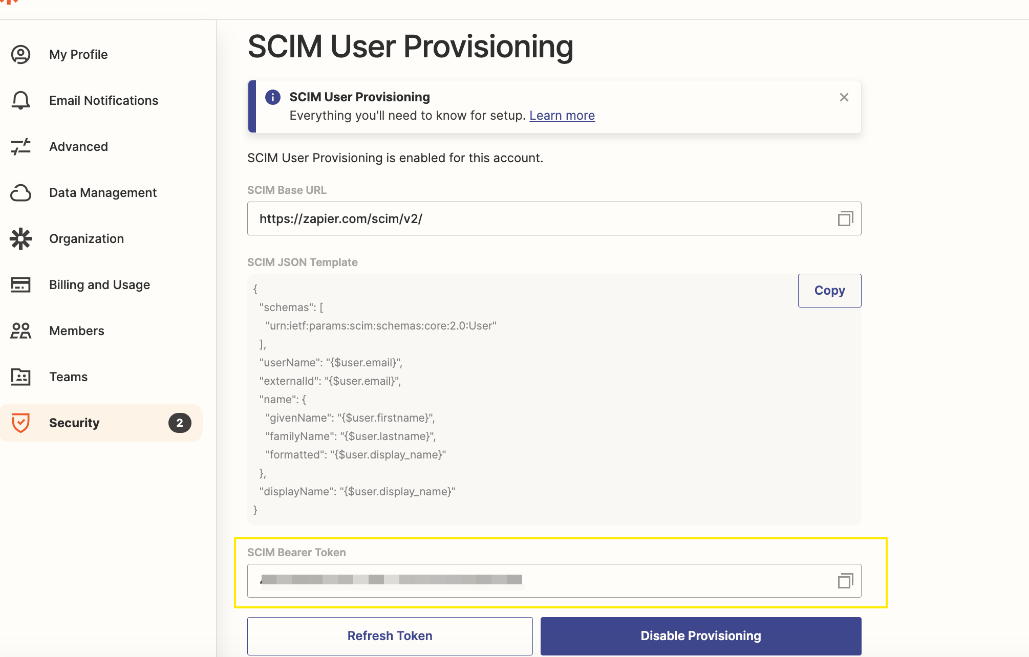 SCIM Bearer Token (APIトークン)を発行する