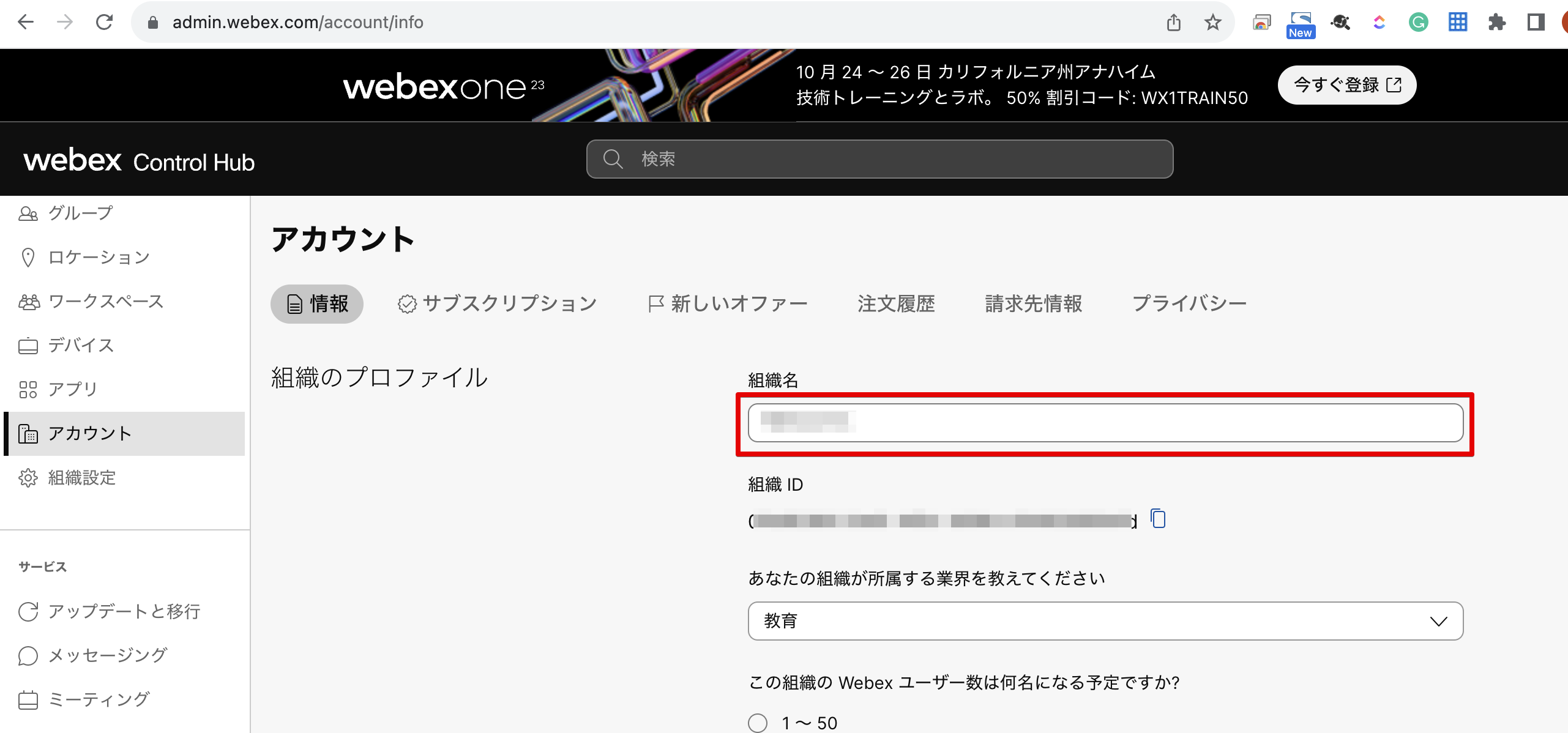 - 組織名は以下の画面から取得できます。