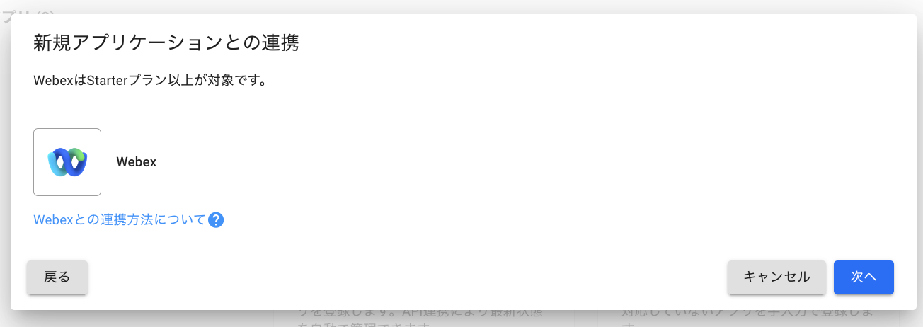 ジョーシスのアプリ連携ページでWebexを連携する手順です。