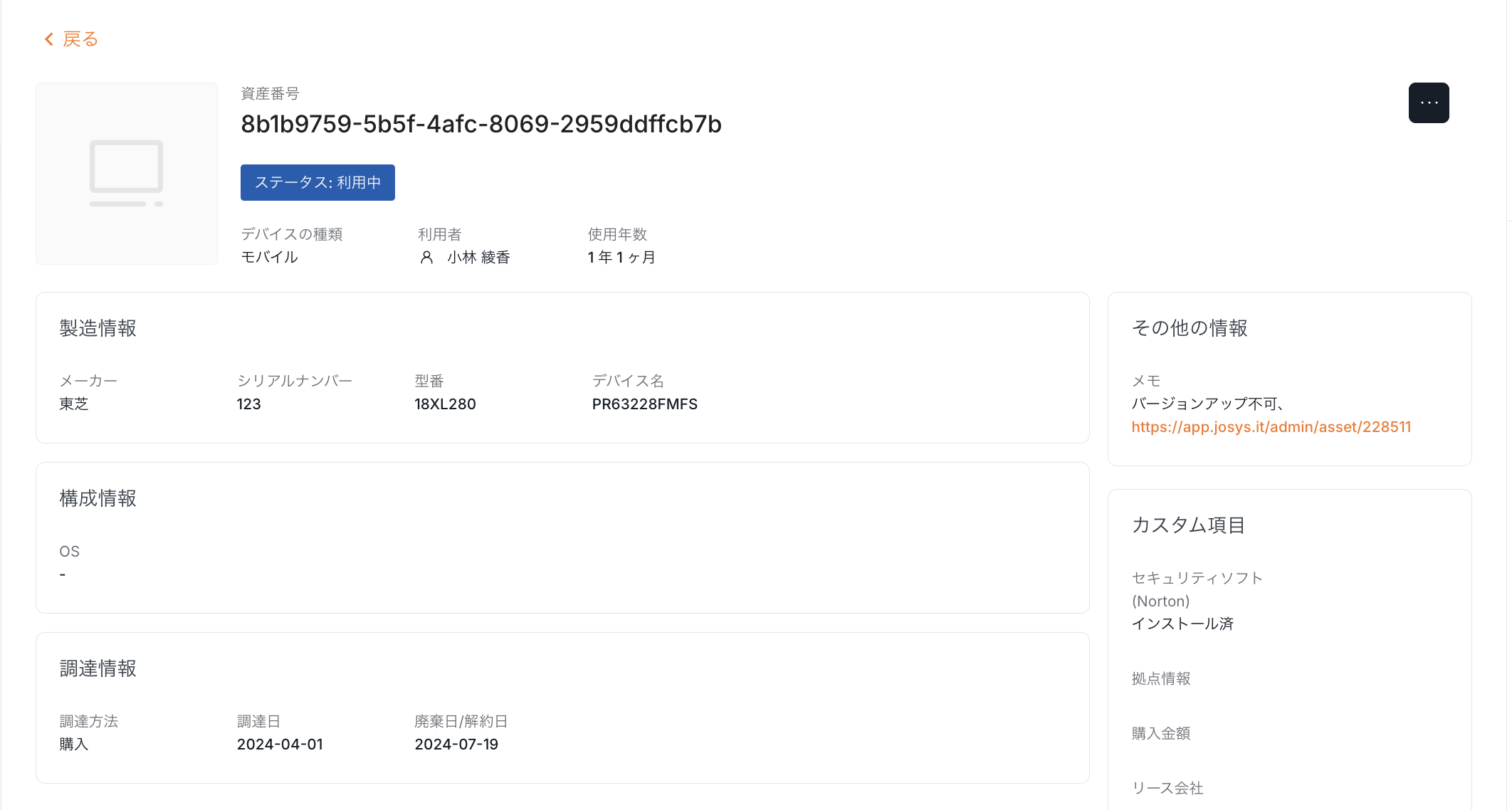 5.デバイス詳細ページでステータス、保証、更新時期等の詳細を確認し、デバイス在庫を管理
