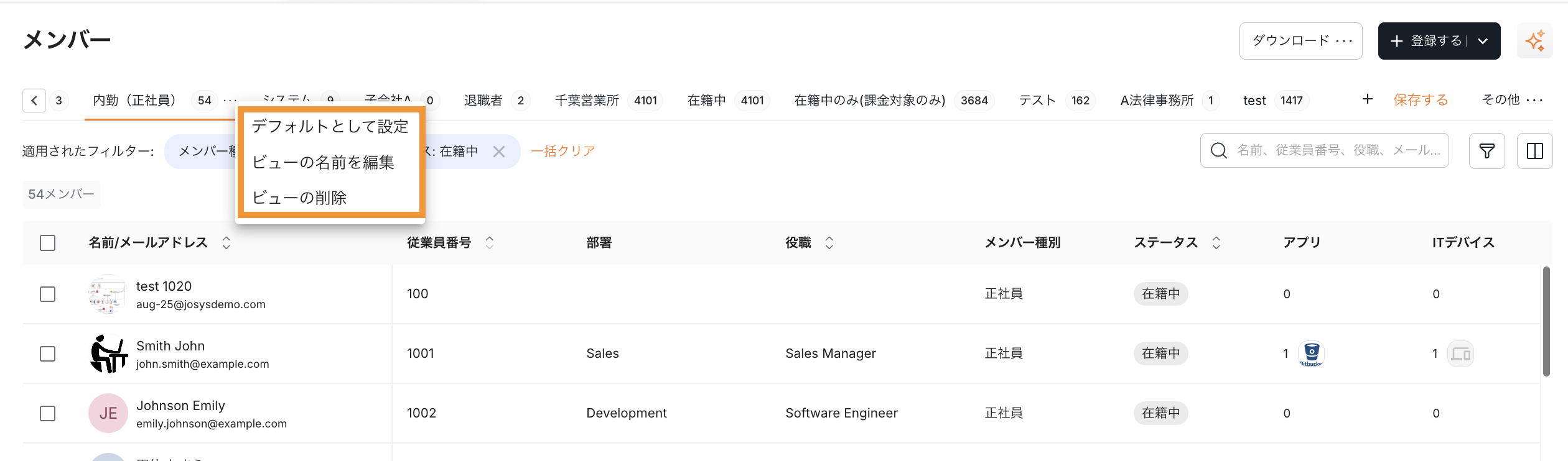 - 管理者がメンバー管理画面にアクセスする際、任意のカスタムビューをデフォルト表示として設定できるようになりました。よく使用するビューを最初に表示することで、日常の管理作業がより効率的になります。