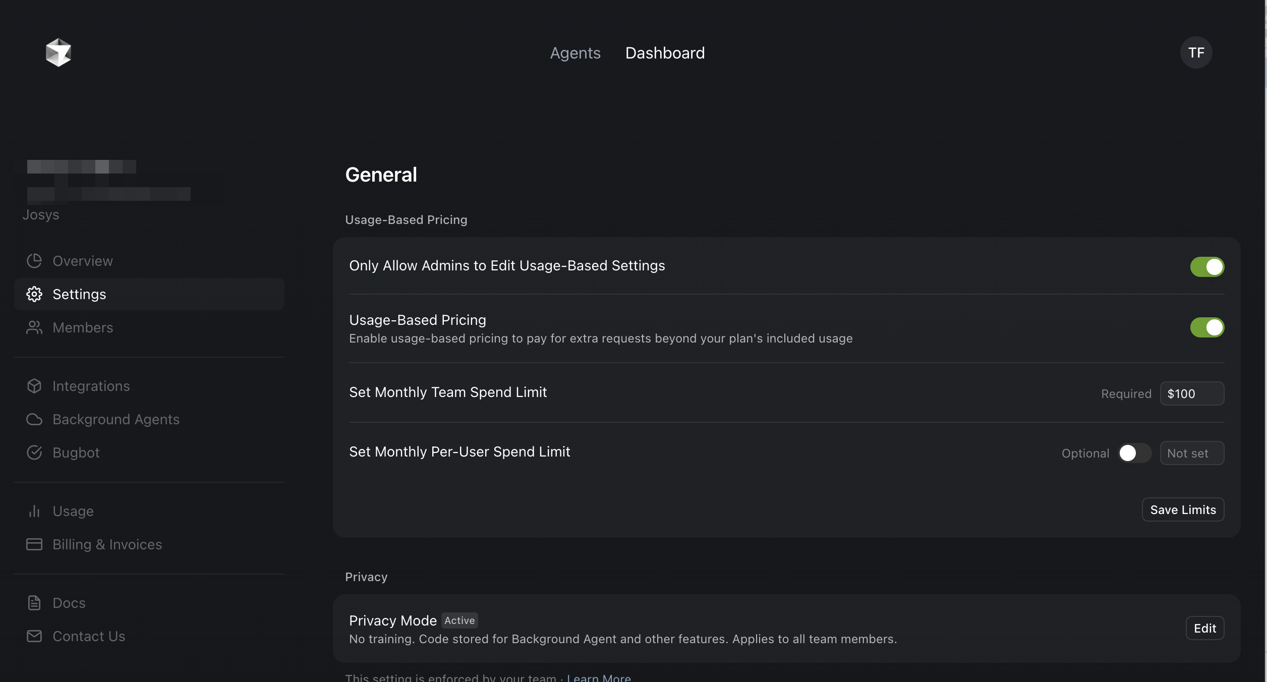 - Cursor Dashboardに AdminまたはUnpaid Adminのアカウントでログインし、