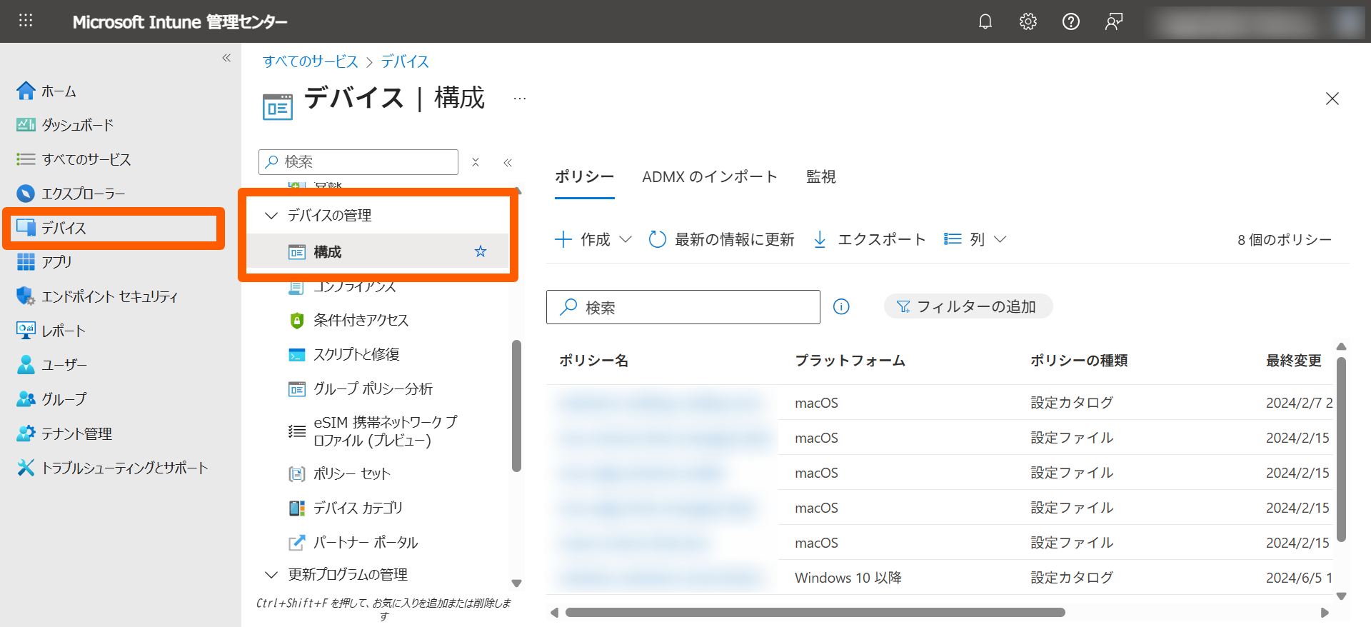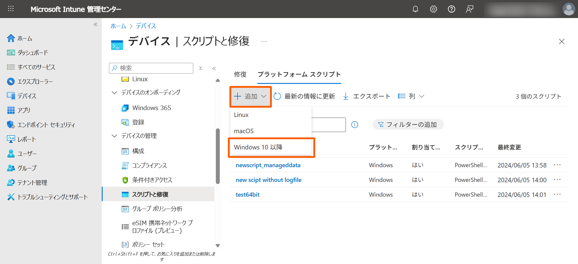 - Microsoft Intune管理センターにサインインします。