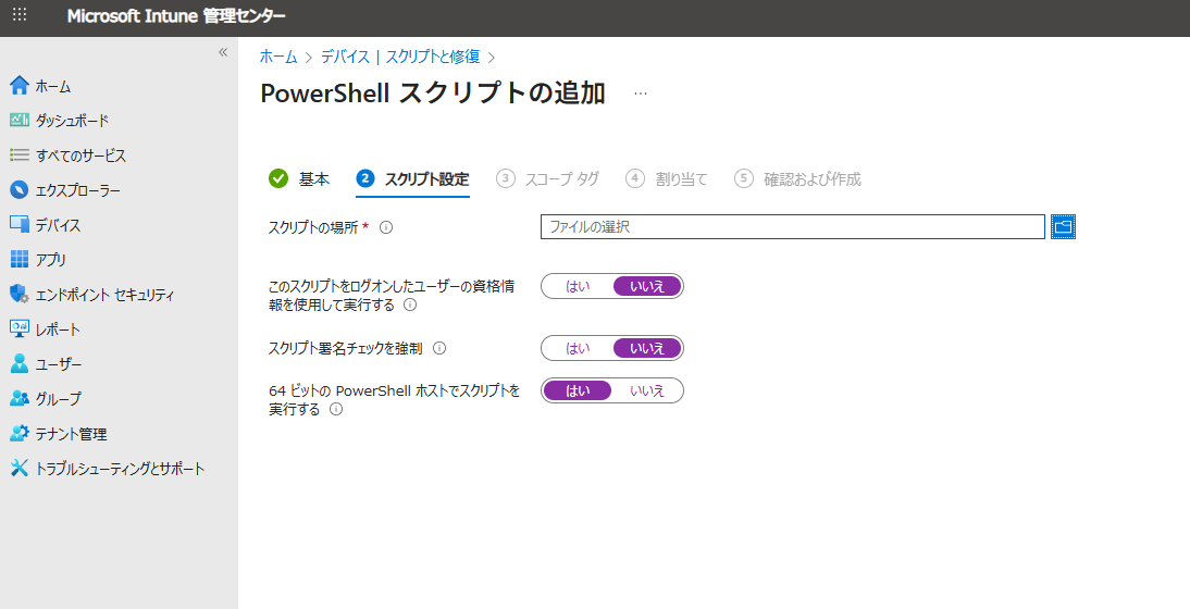 64ビットのPower Shell ホストでスクリプトを実行する:「はい」 - 選択が完了したら、ページ下部にある「次へ」をクリックしてください。