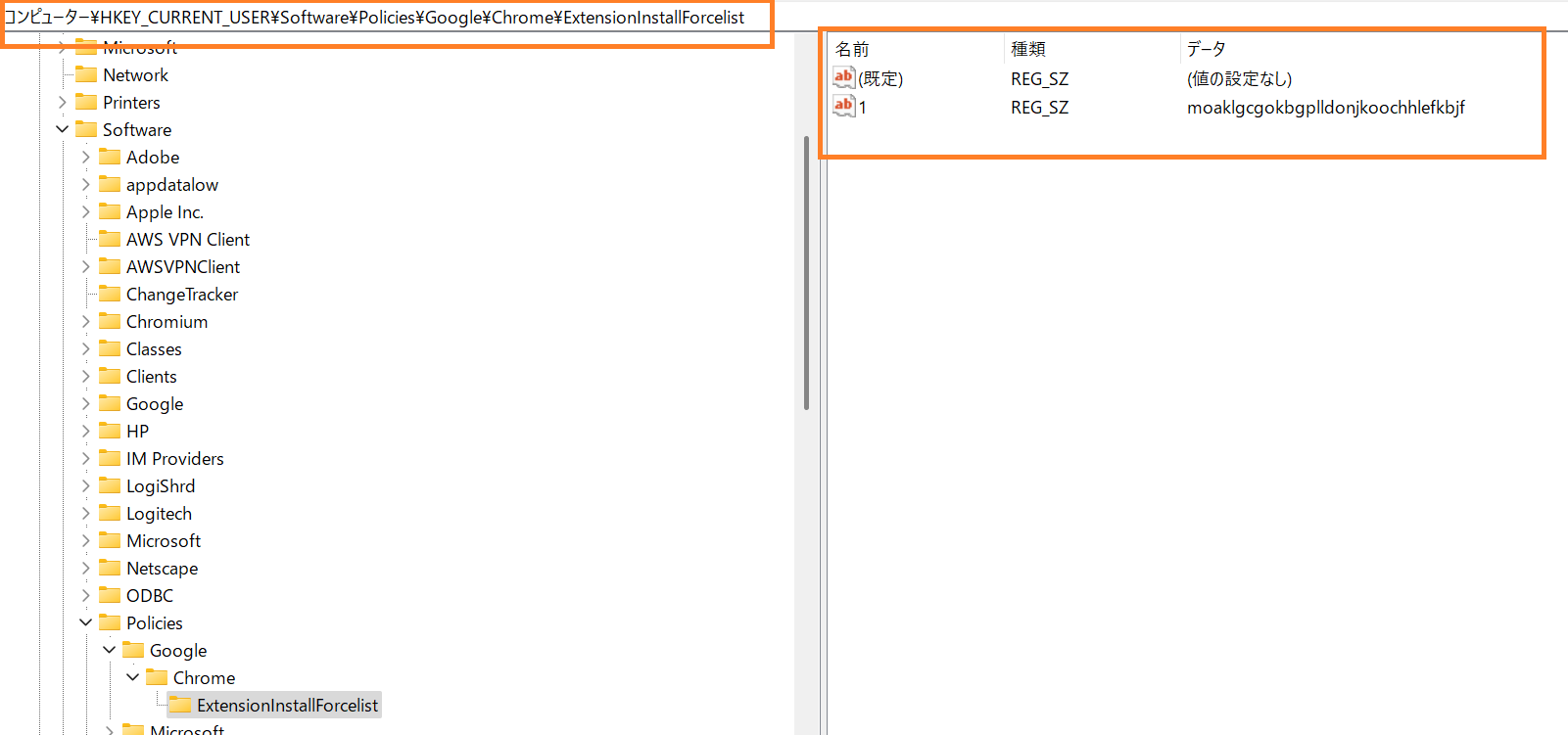 HKEY_LOCAL_MACHINE\SOFTWARE\Policies\Google\Chrome\ExtensionInstallForcelist