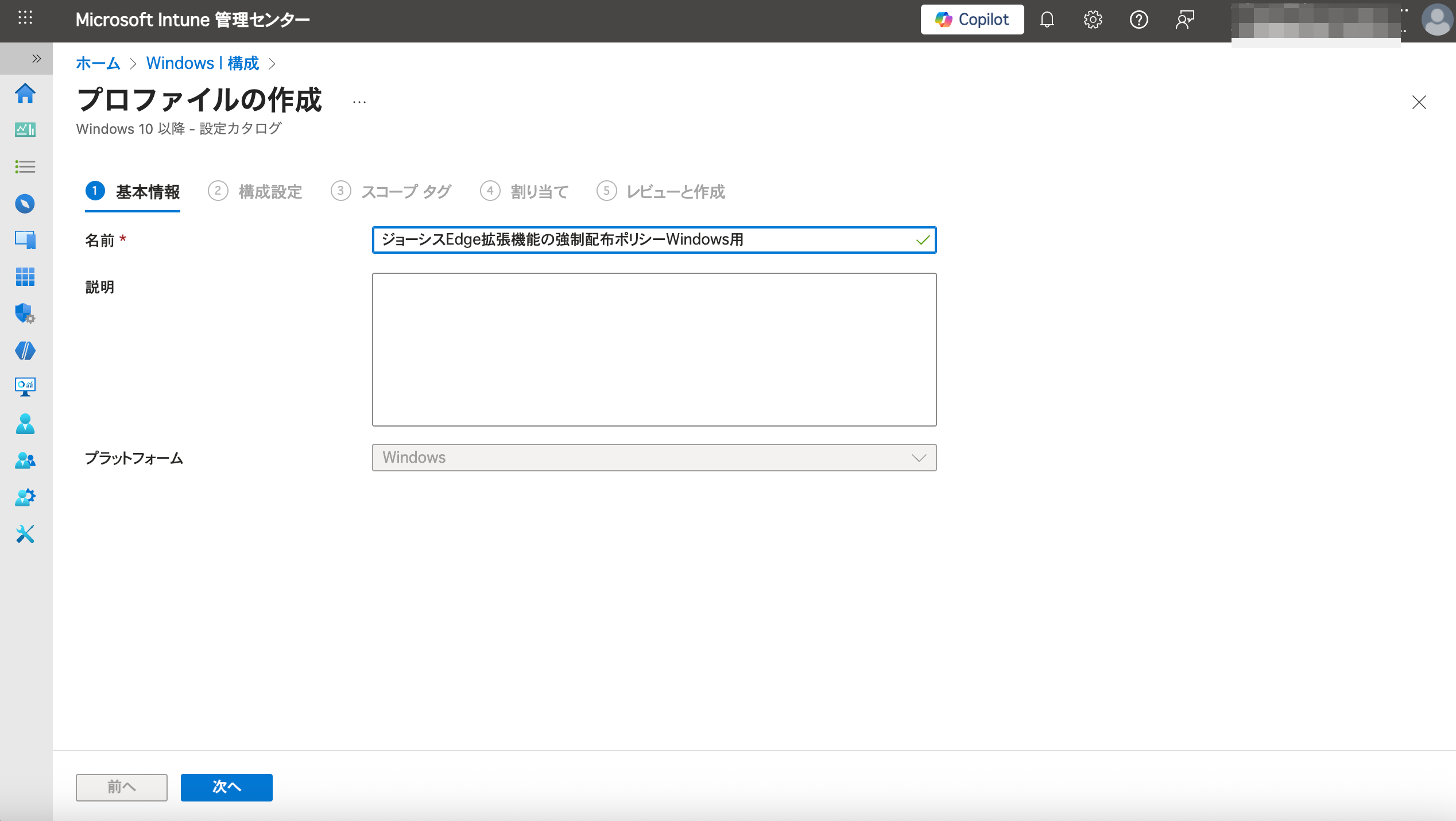 名前: (例: ジョーシスEdge拡張機能の強制配布ポリシーWindows用)