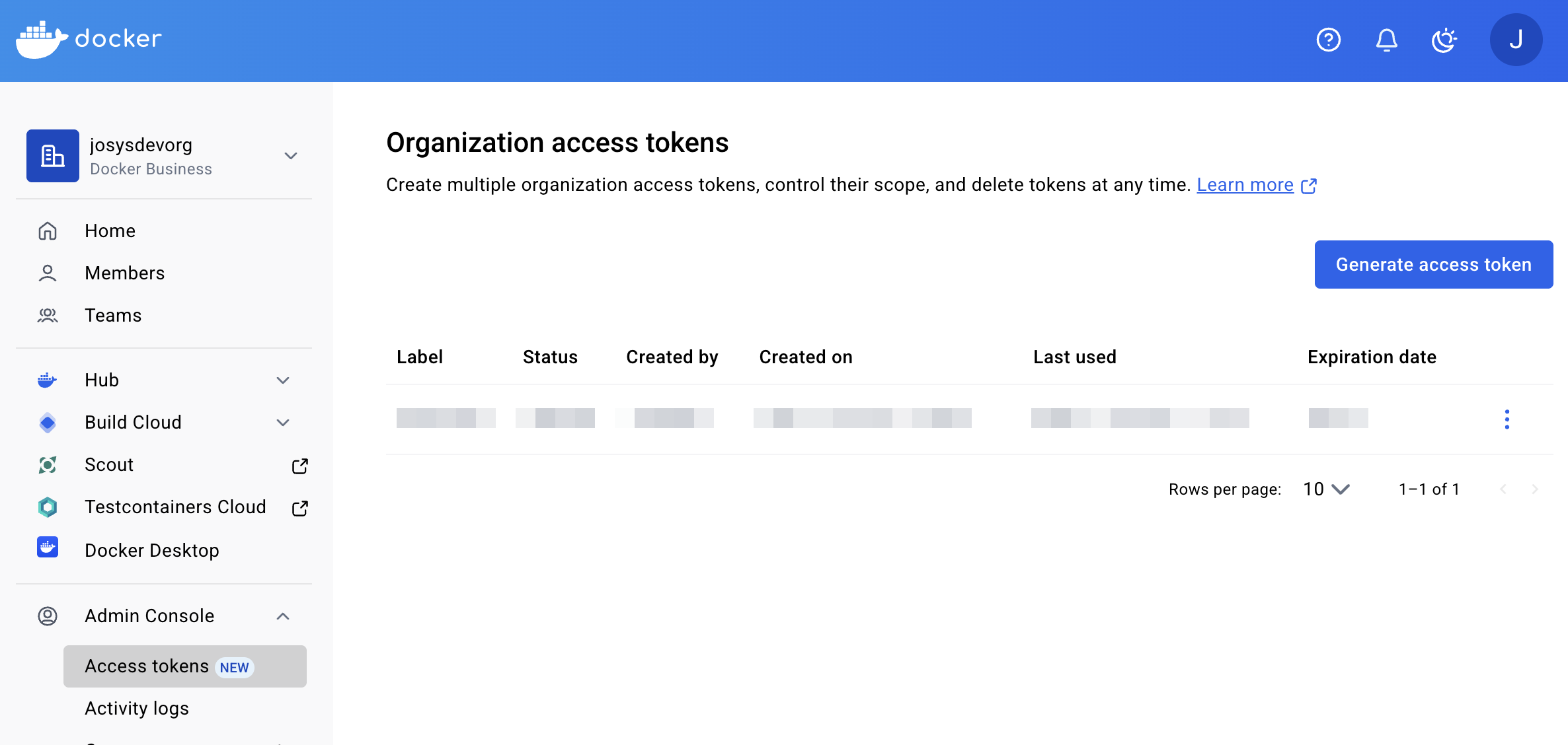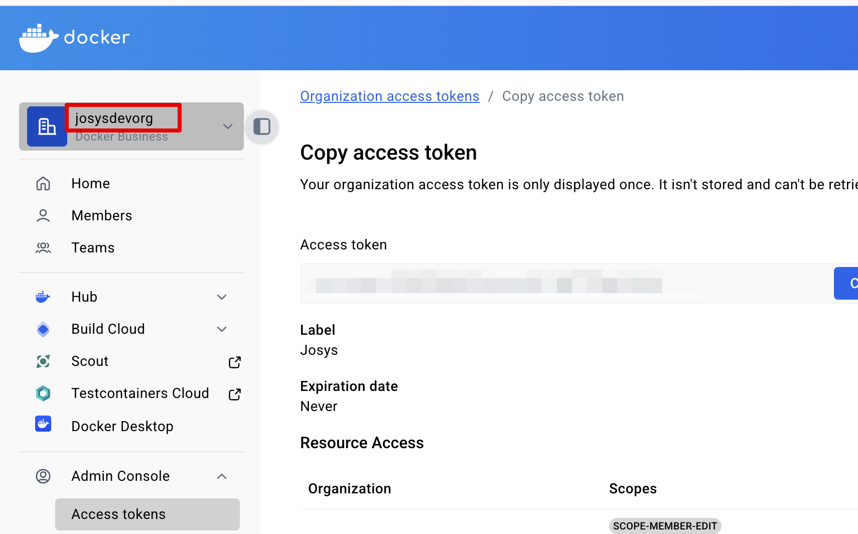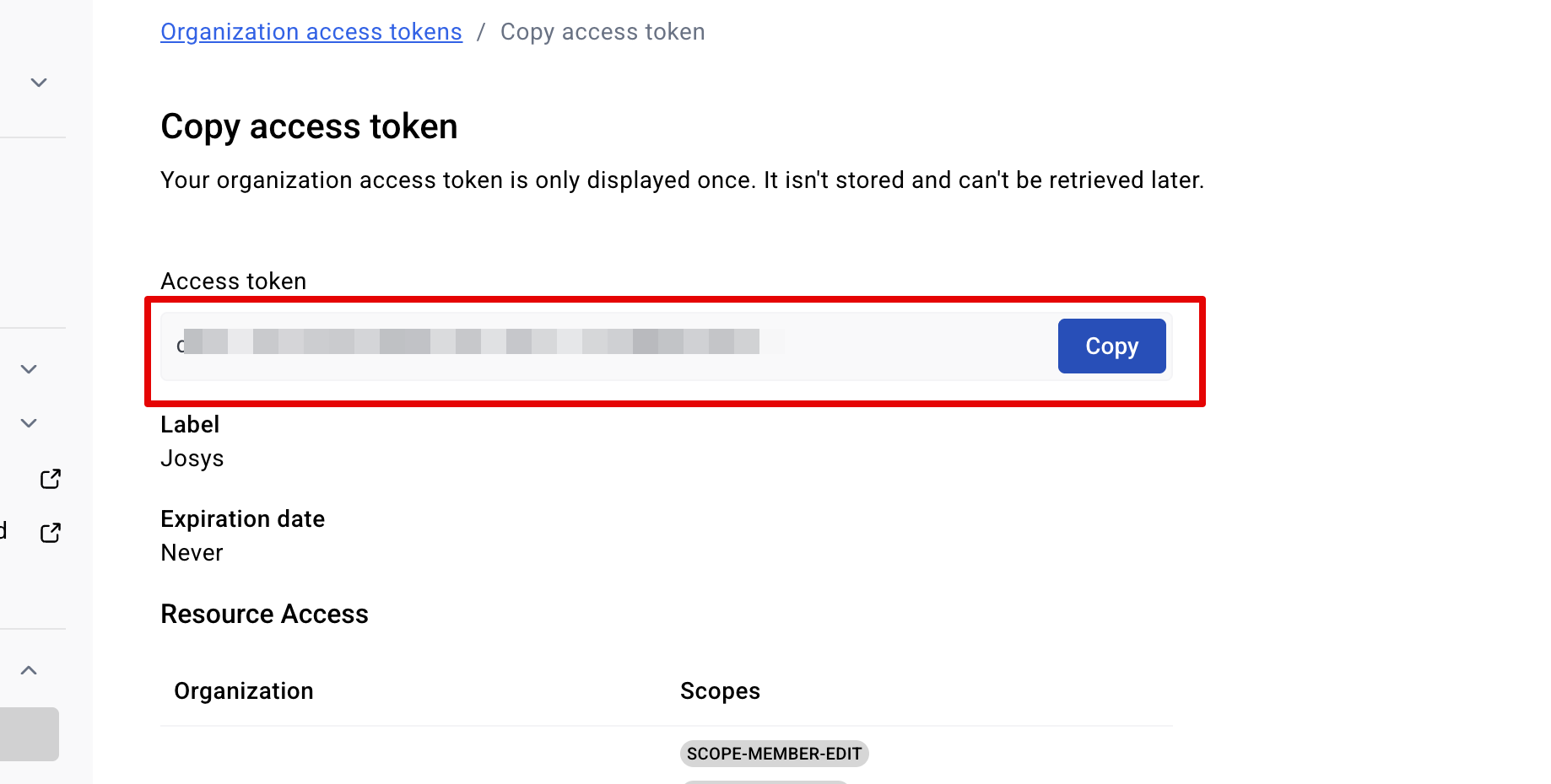 Admin Console > Organization access tokensにアクセスします。