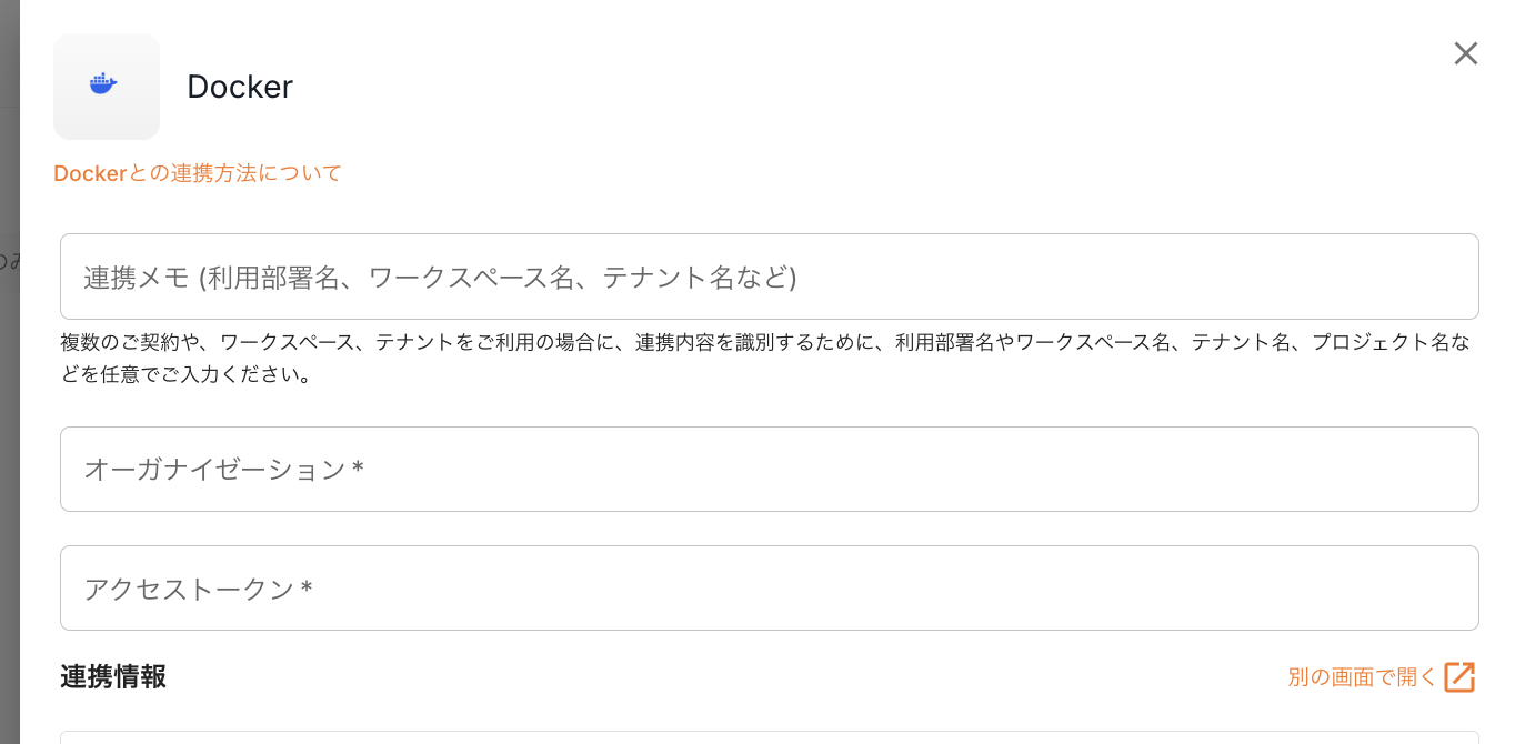 - オーガナイゼーション、アクセストークンを入力し、 「次へ」 をクリックし連携を完了します。