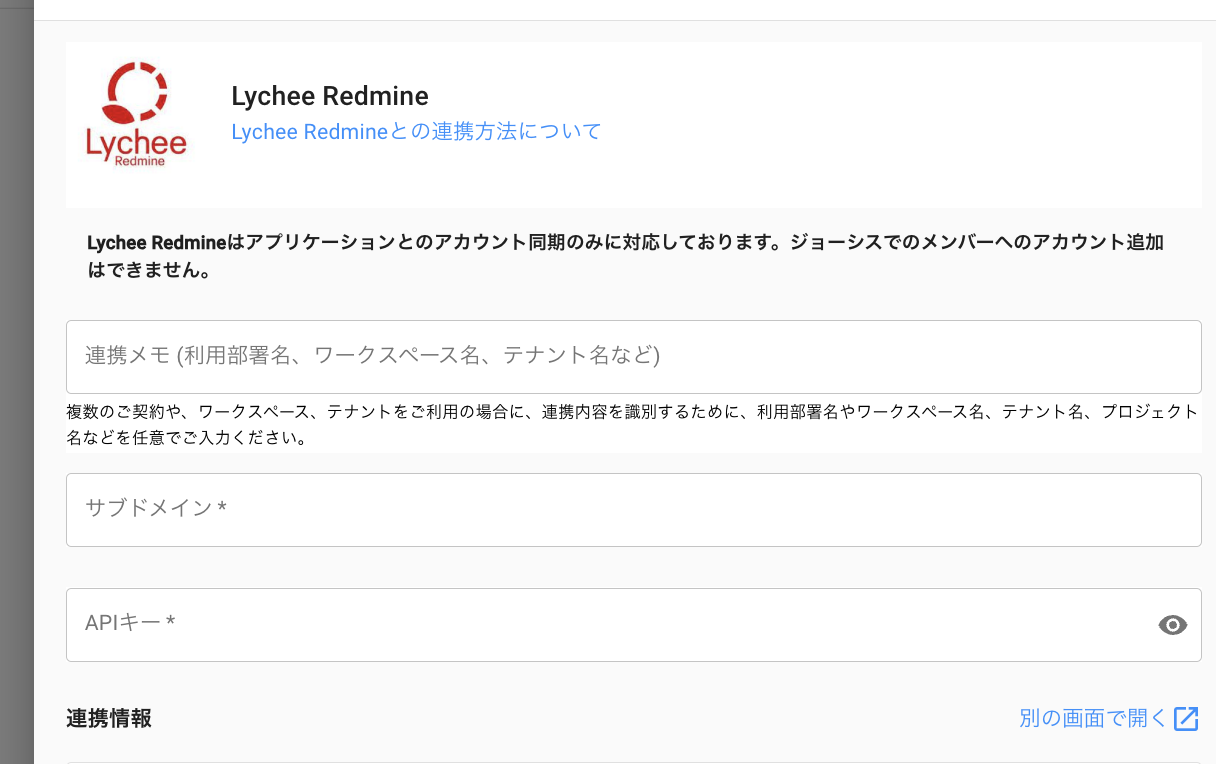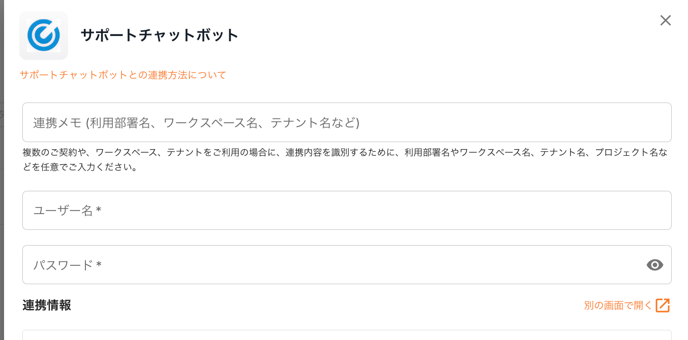 Josysのアプリ連携ページでサポートチャットボットを連携する手順です