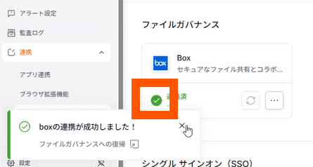 参考:Box - 左メニューから、「連携>マスタ連携」をクリックします。