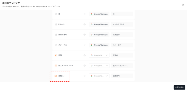 - 柔軟な属性マッピング: 各データソースの異なる属性名を、Josysの標準属性やカスタムフィールドに柔軟にマッピングできます